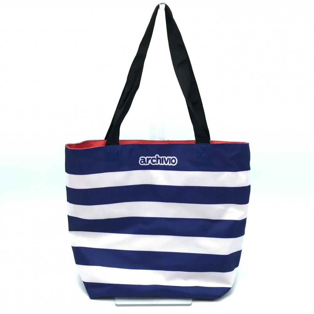 【超美品】アルチビオ リバーシブルトートバッグ 白×ネイビー ボーダー 裏レッド 非売品 ゴルフ archivio