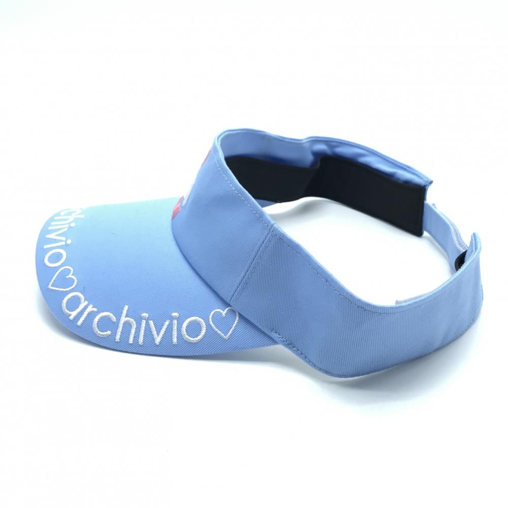 【超美品】アルチビオ サンバイザー ライトブルー×白 つば刺しゅう ハート ゴルフウェア archivio