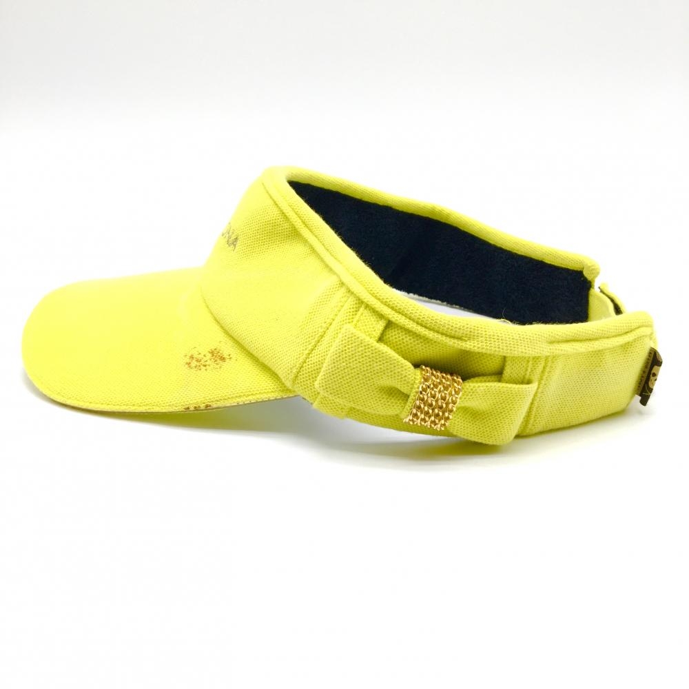 マークアンドロナ サンバイザー イエロー×ゴールド ロゴ リボン レディース ゴルフウェア MARK&LONA