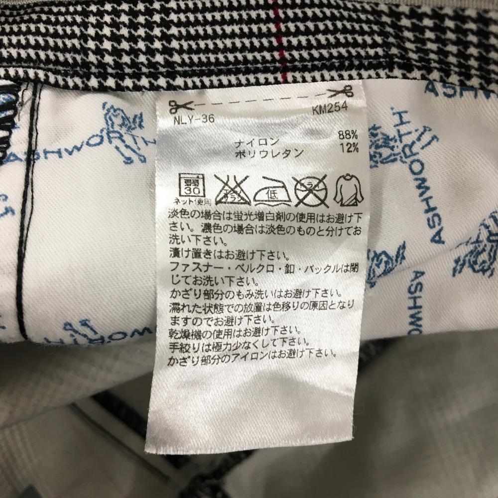 【美品】アシュワース パンツ 白×黒 チェック ストレッチ メンズ 88 ゴルフウェア ASHWORTH