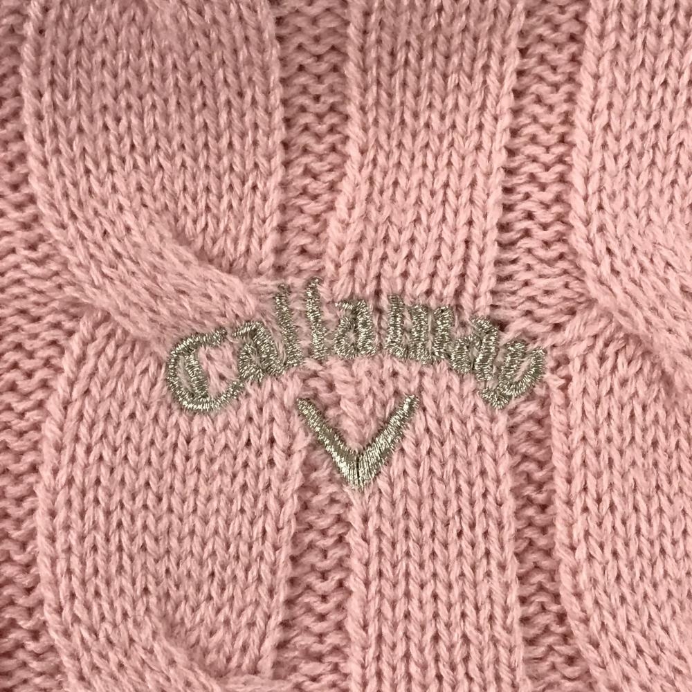 【美品】キャロウェイ タートルネックセーター ライトピンク 身頃ケーブル編み レディース M ゴルフウェア 2025年モデル Callaway