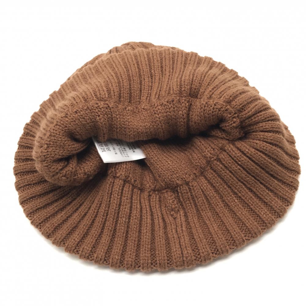 【超美品】ラーキンス ニット帽 ブラウン ロゴ ケーブル編み フリー ゴルフウェア LARKINS