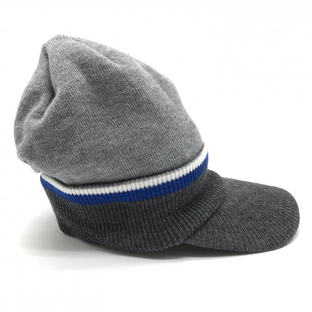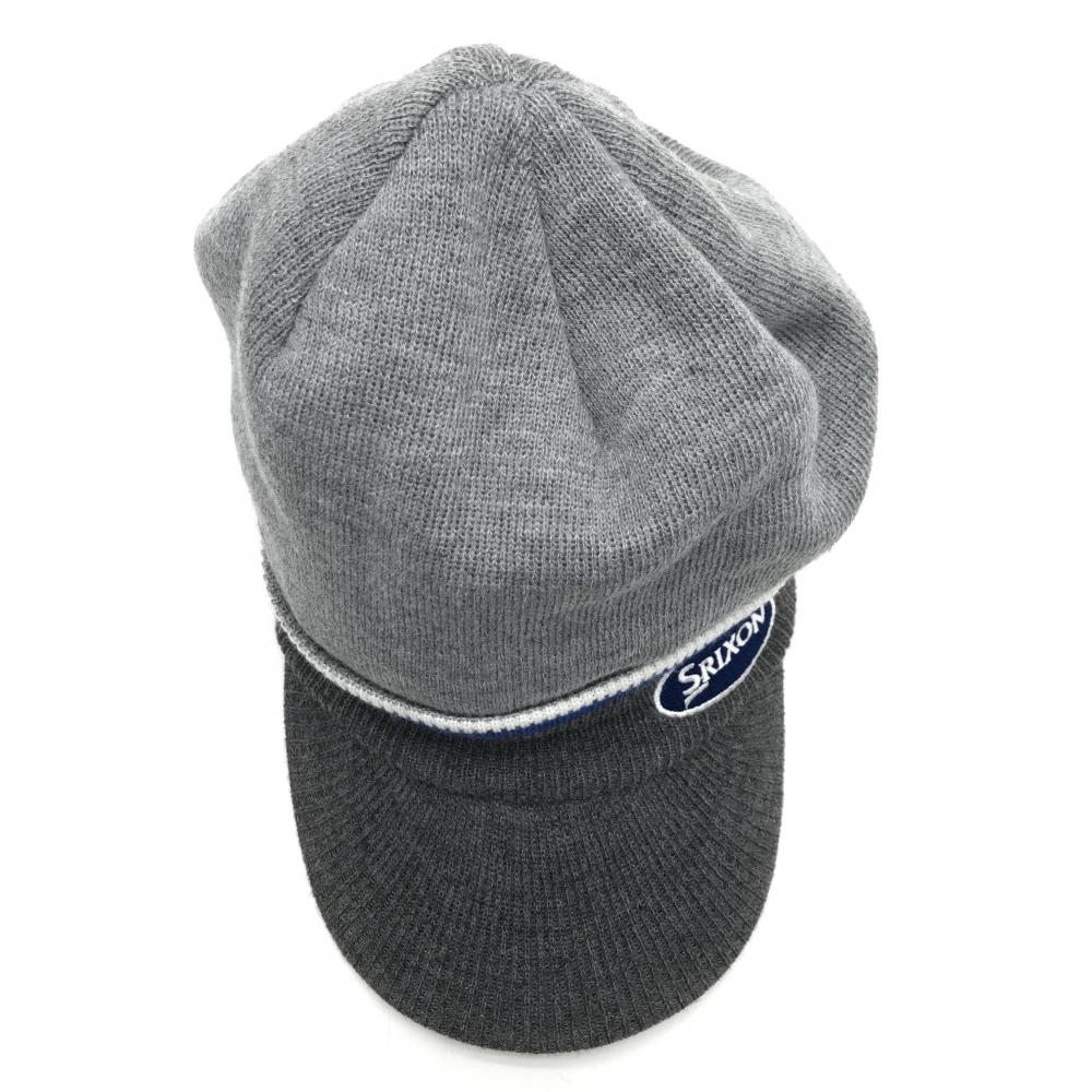 【超美品】スリクソン つば付きニット帽 杢グレー×杢ダークグレー×ブルー フロントロゴ刺しゅう フリーサイズ ゴルフウェア SRIXON