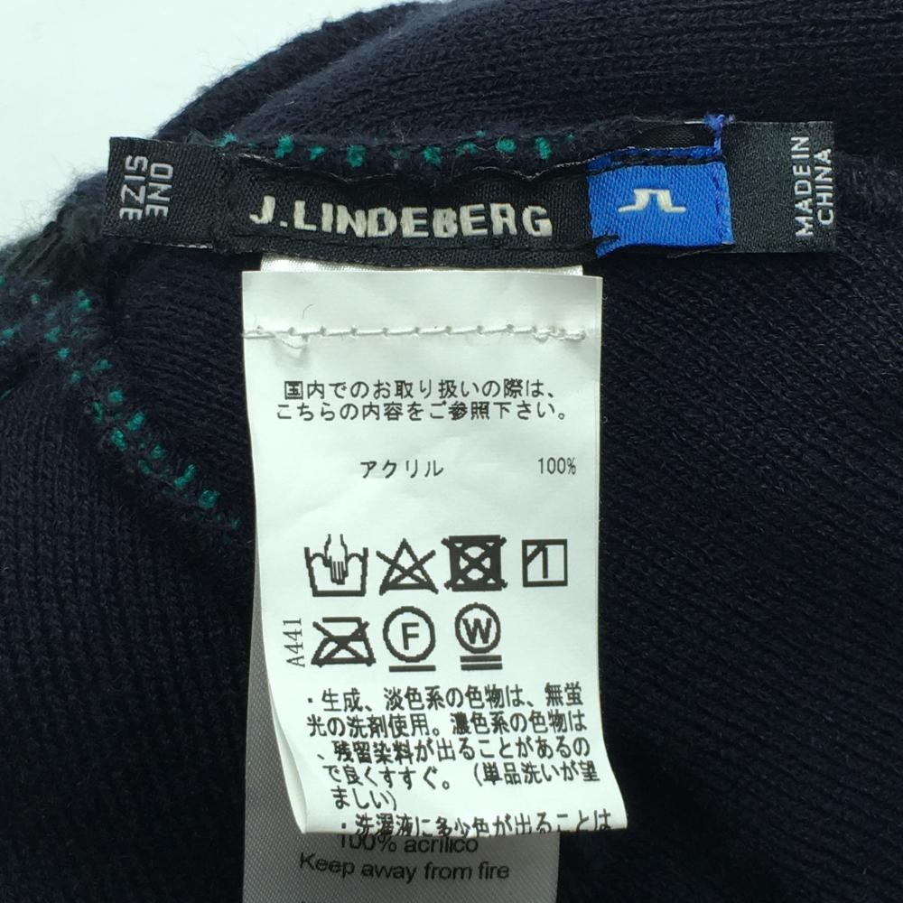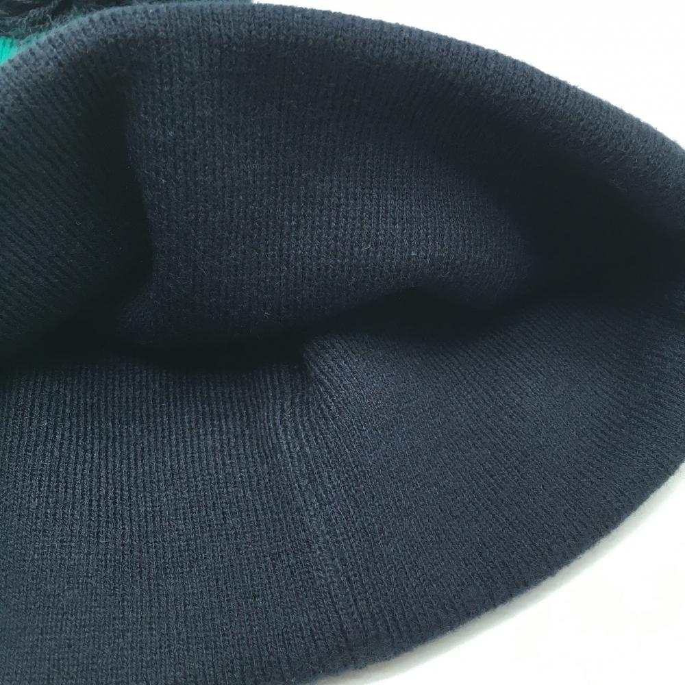 【超美品】ジェイリンドバーグ ニット帽 グリーン×黒 ボーダー フロントロゴ ボンボン付き OneSize ゴルフウェア J.LINDEBERG
