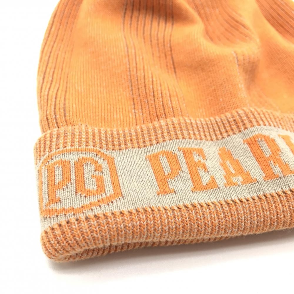 【美品】パーリーゲイツ ニット帽 オレンジ×ベージュ ロゴ コットン混 毛羽立ち少 FR ゴルフウェア PEARLY GATES