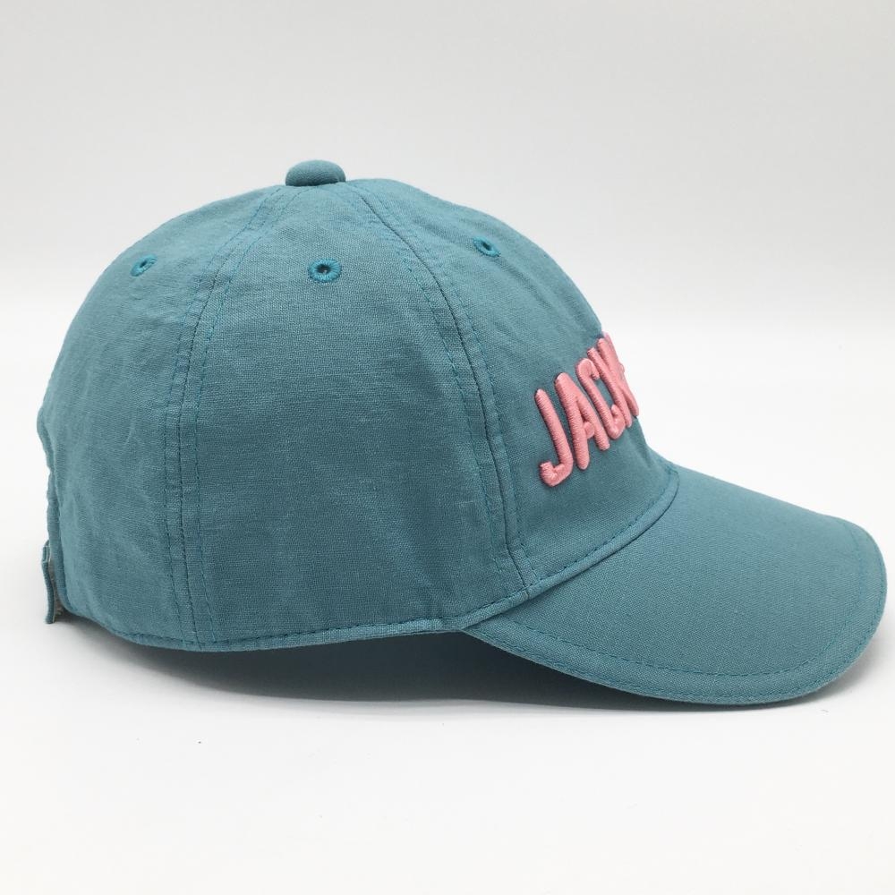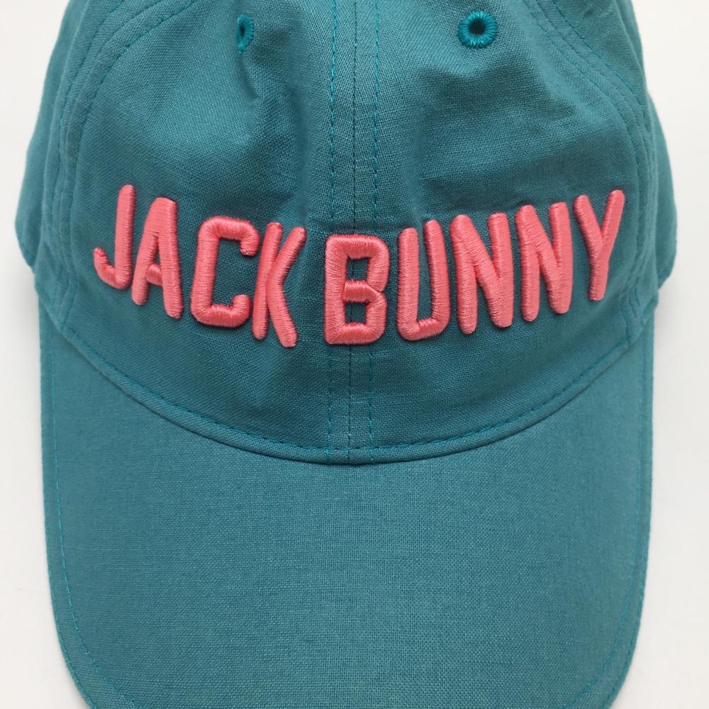 【超美品】ジャックバニー キャップ ブルーグリーン系×ピンク 麻混 立体ロゴ刺しゅう FR ゴルフウェア Jack Bunny