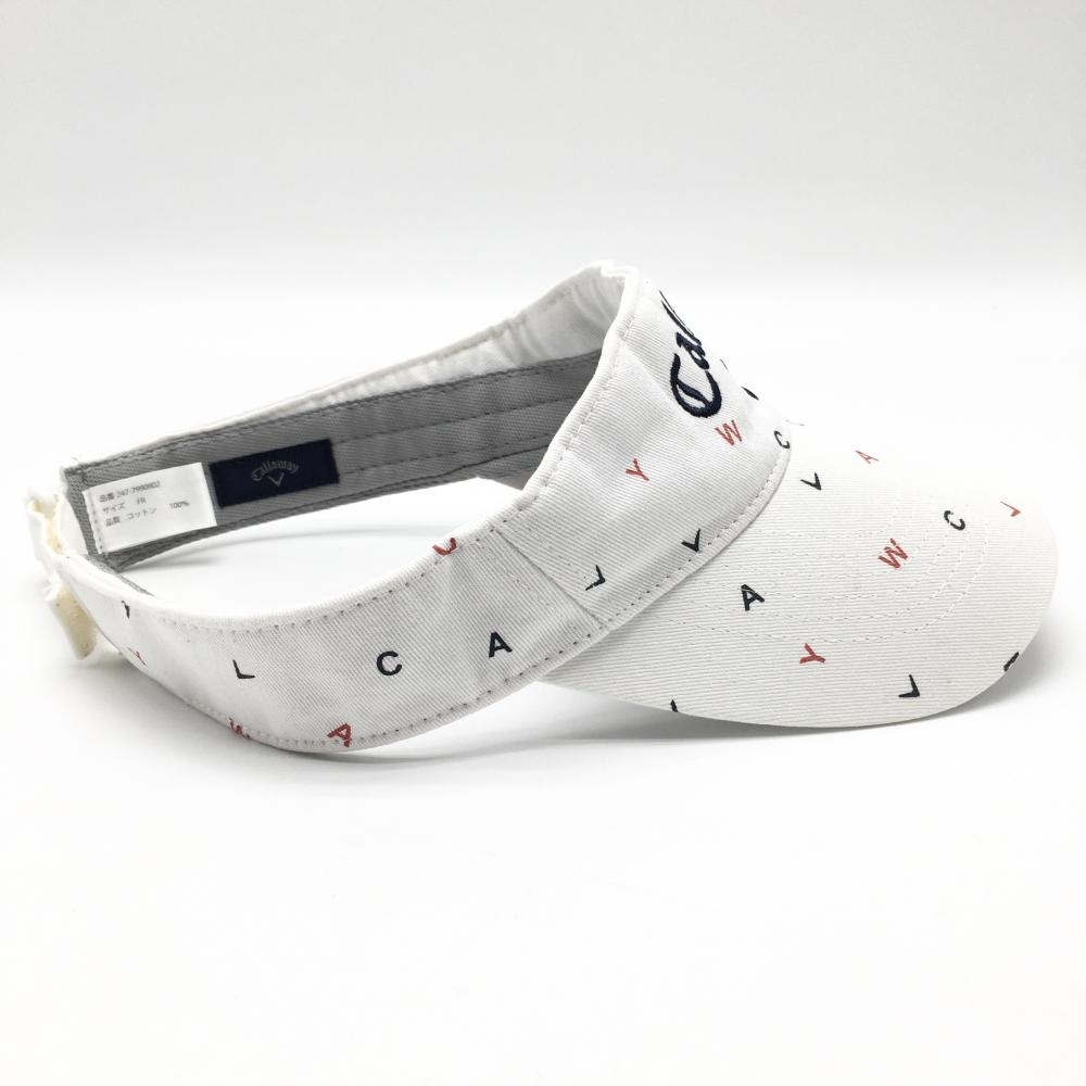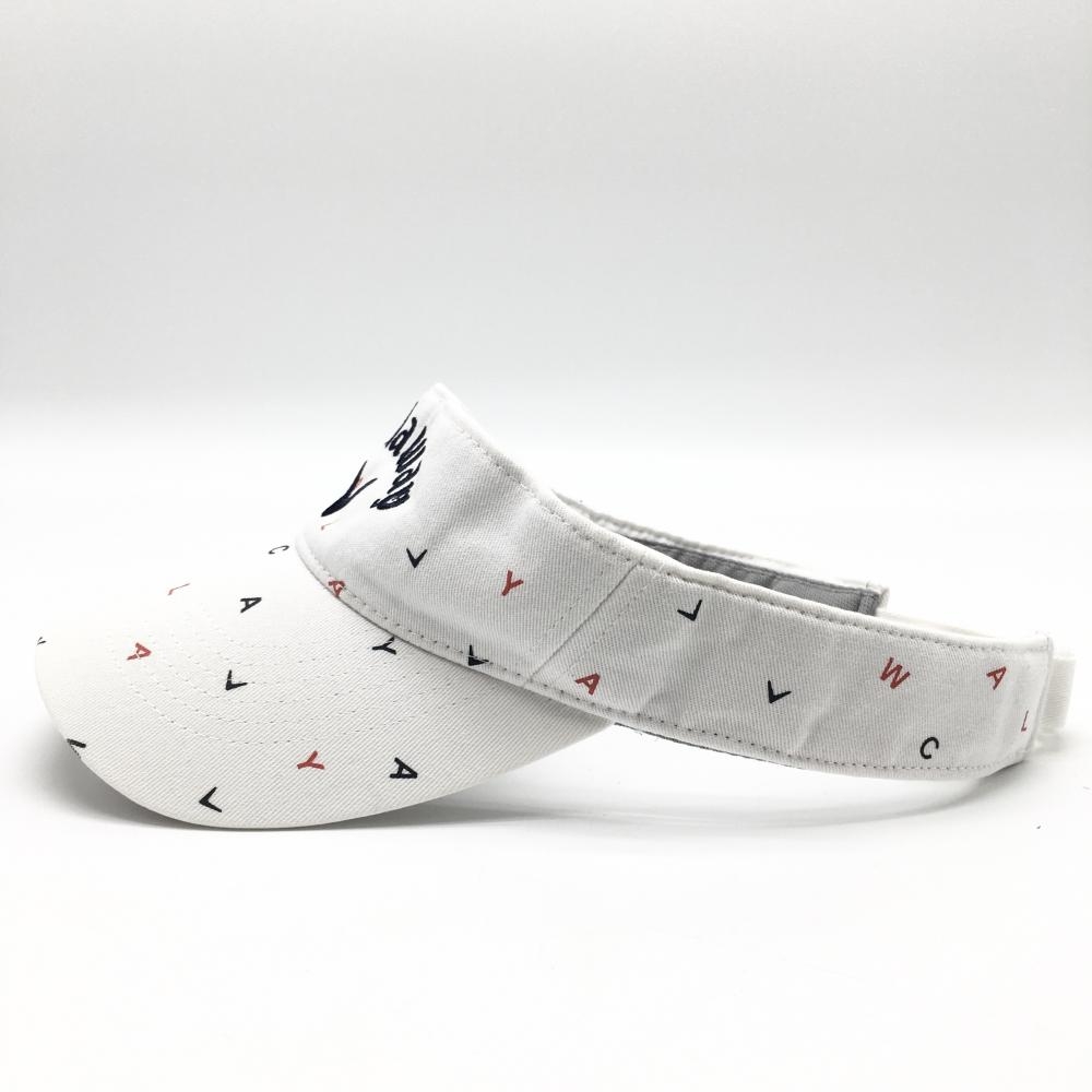 キャロウェイ サンバイザー 白×レッド×ネイビー 英字総柄 コットン100% FR ゴルフウェア Callaway