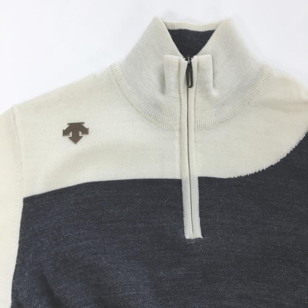 デサントゴルフ ハイネックセーター 白×グレー ハーフジップ ウール混 ニット 中田英寿 レディース M ゴルフウェア DESCENTE