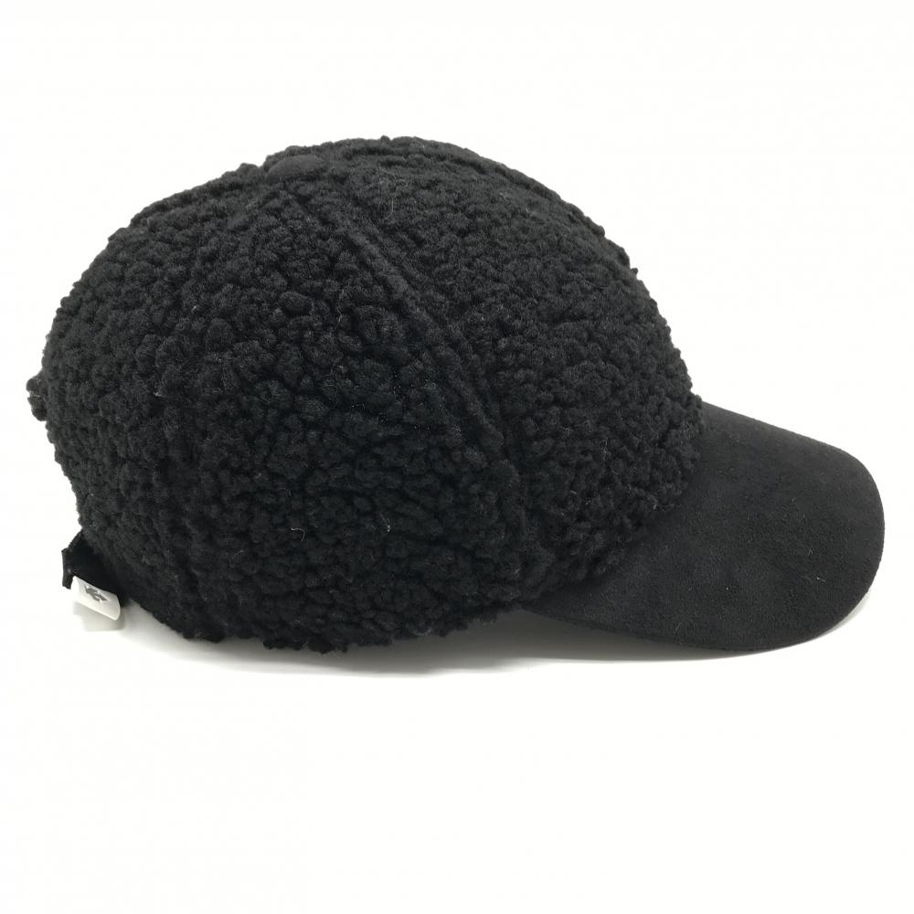 【超美品】デサントゴルフ ボアキャップ 黒 つばロゴ刺しゅう白 中田英寿 F(55-57cm) ゴルフウェア DESCENTE