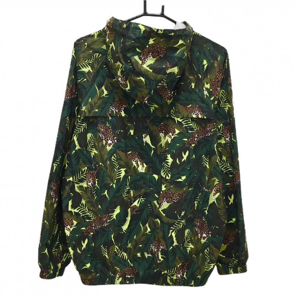 ジャックバニー ジップパーカー グリーン×ブラウン リーフ総柄 一部レオパード ヒョウ柄 メンズ 4(M) ゴルフウェア Jack Bunny