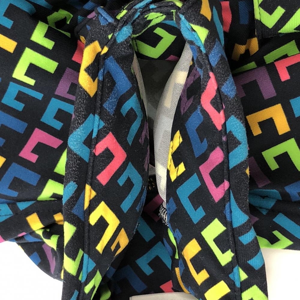 【美品】ルコックゴルフ 長袖ポロシャツ ネイビー×マルチカラー 総柄 ボタンダウン メンズ M ゴルフウェア le coq sportif