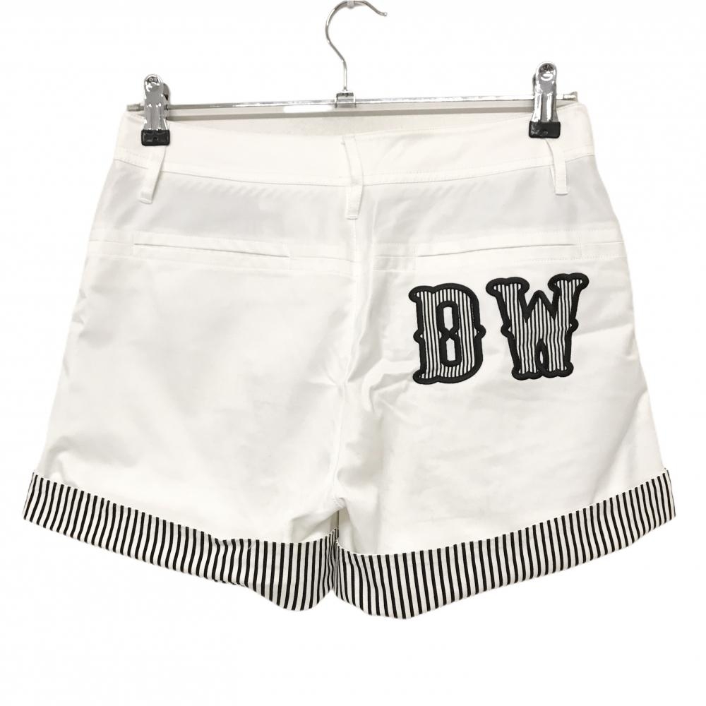 ダンスウィズドラゴン ショートパンツ 白×黒 裾ストライプ ロゴ刺しゅう レディース 3(L) ゴルフウェア Dance With Dragon