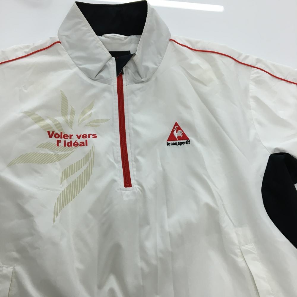 ルコックゴルフ 半袖中綿ブルゾン 白×レッド 袖パイピングライン ハーフジップ メンズ L ゴルフウェア le coq sportif