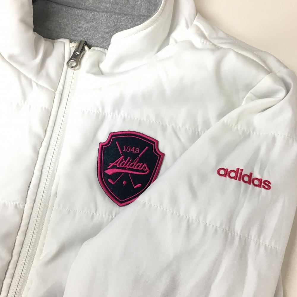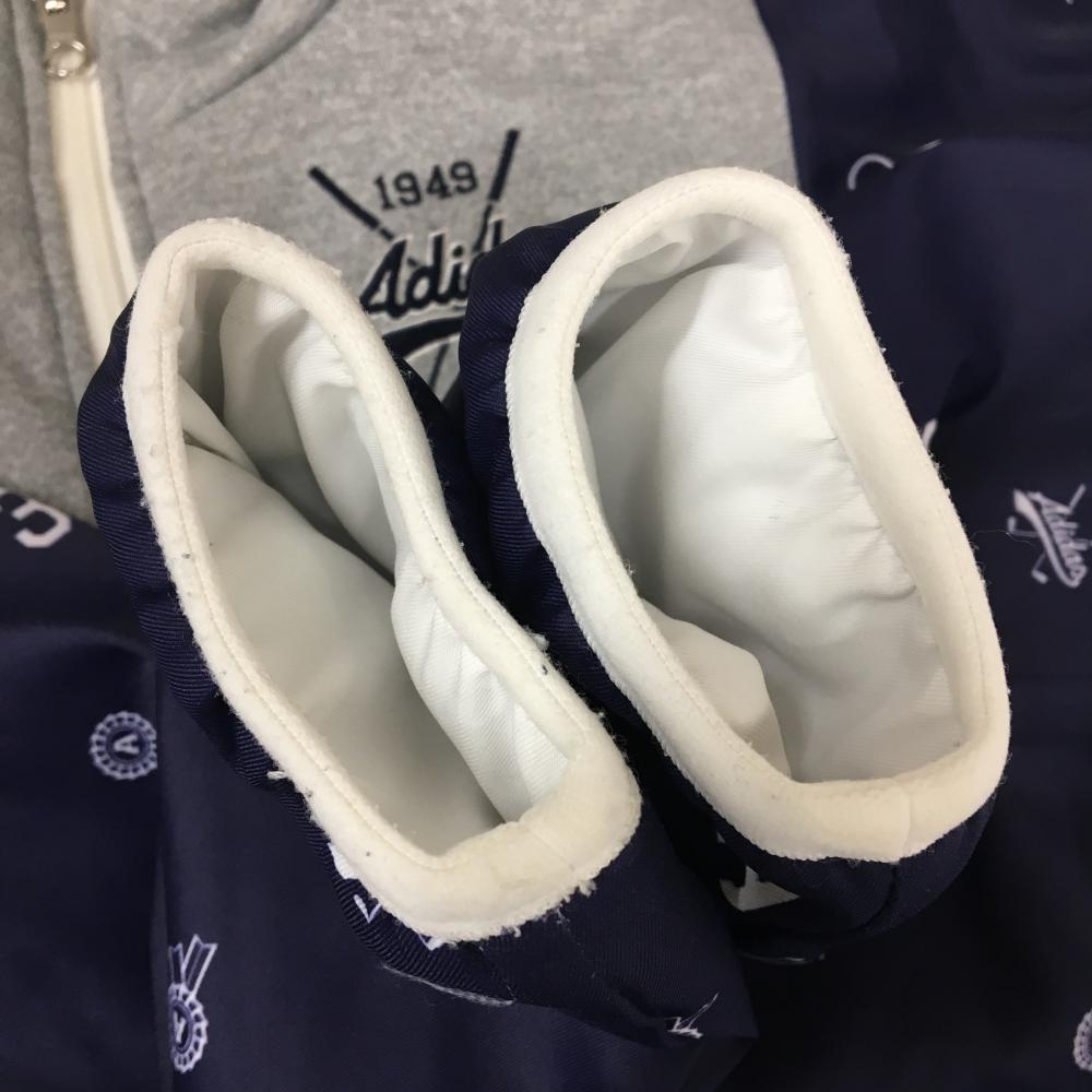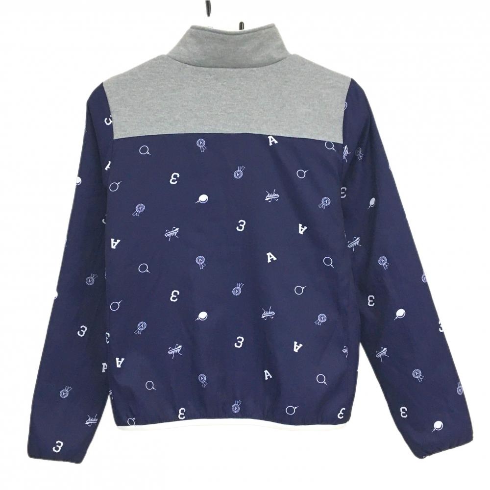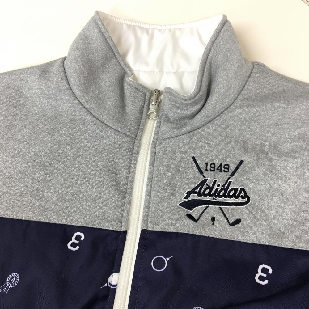 アディダス リバーシブル中綿ジャケット ネイビー×グレー 総柄 裏白 レディース S/P ゴルフウェア adidas