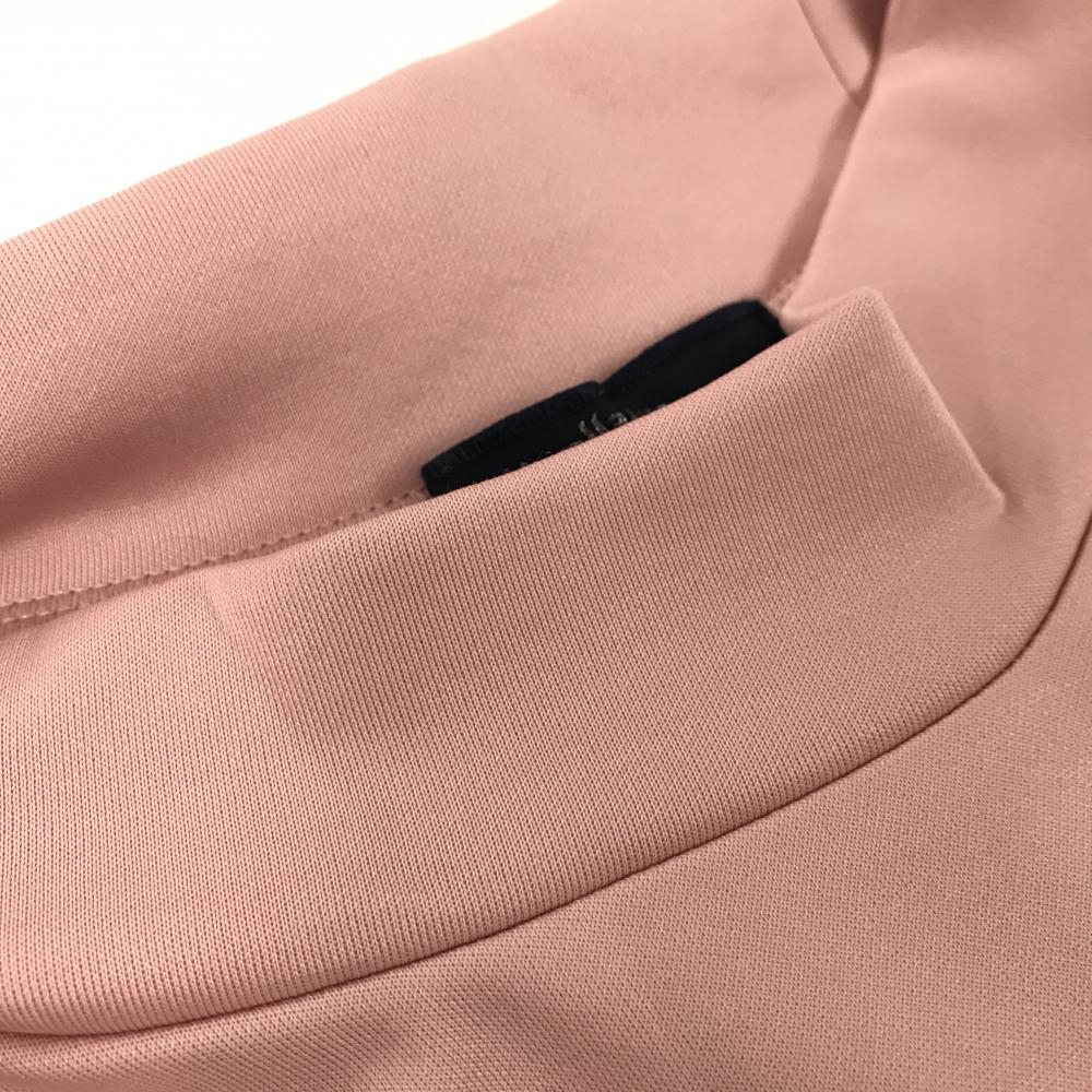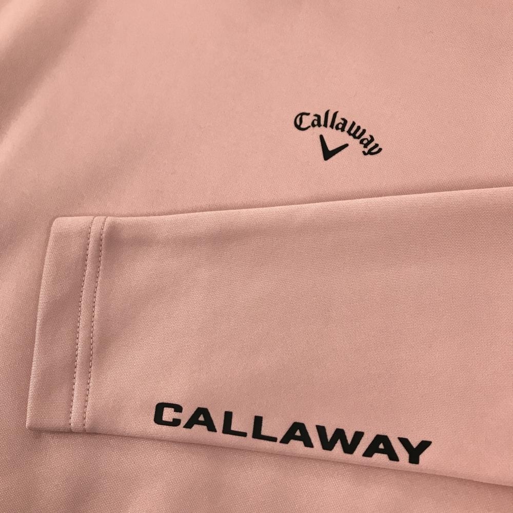 【美品】キャロウェイ 長袖ハイネックシャツ ライトピンク×黒 裏起毛 胸ロゴ レディース M ゴルフウェア 2025年モデル Callaway