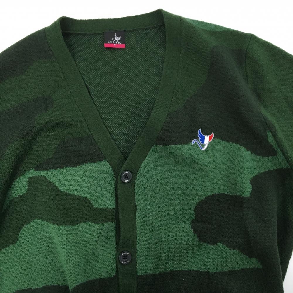 【美品】クランク ニットカーディガン グリーン×カーキ 迷彩 カモフラ ウール混 メンズ O ゴルフウェア CLUNK