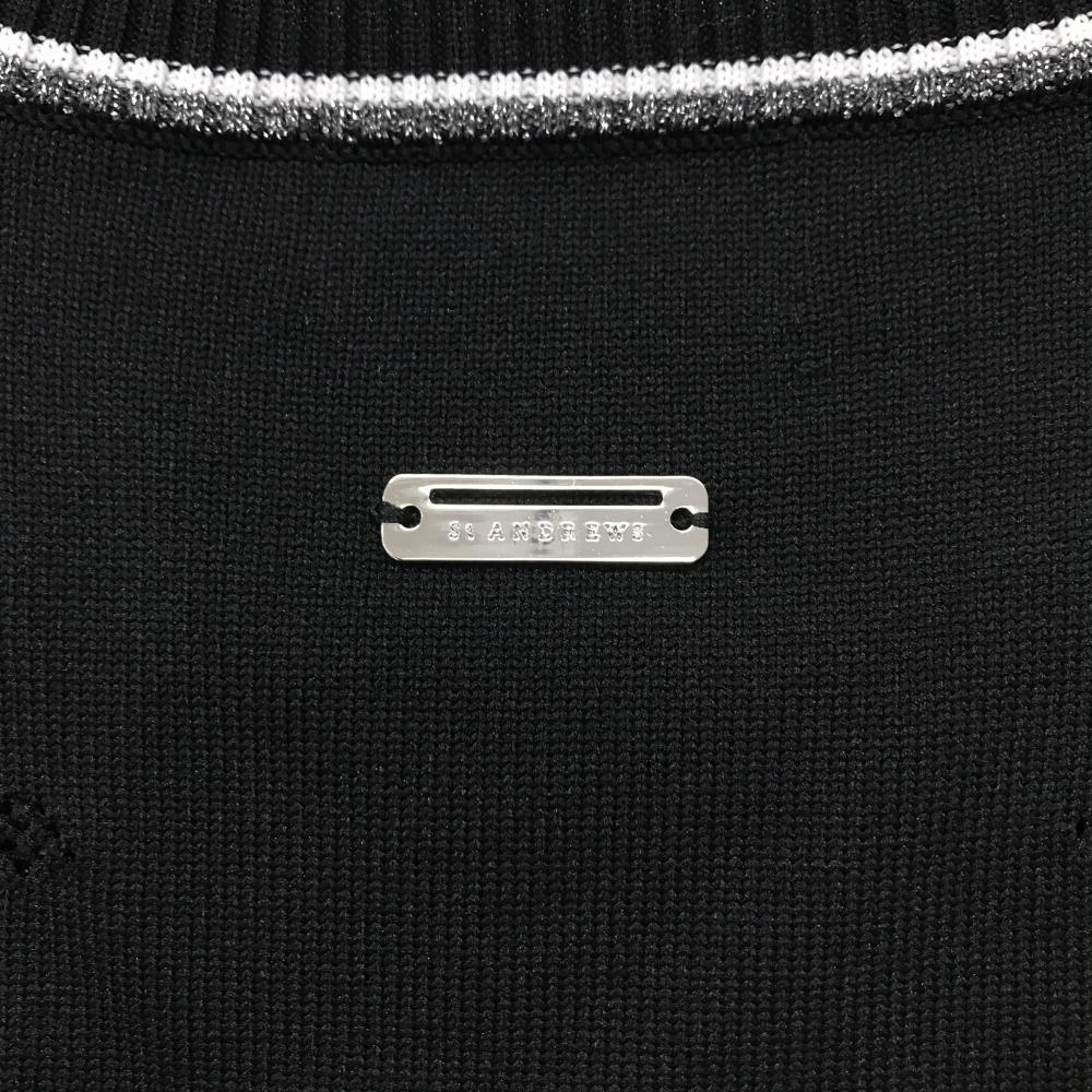 【超美品】セントアンドリュース ニットベスト 黒 背面ロゴ総柄編み ロゴ透かし編み レディース L ゴルフウェア 2024年モデル St ANDREWS