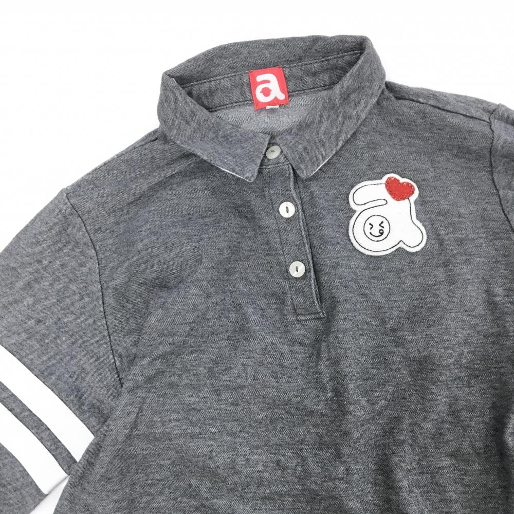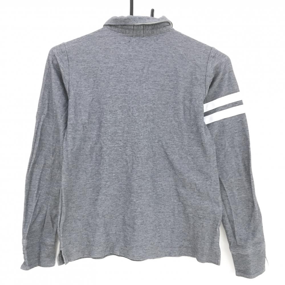 【美品】アルチビオ 長袖ポロシャツ グレー系 袖白ライン ロゴワッペン レディース 40(L) ゴルフウェア archivio