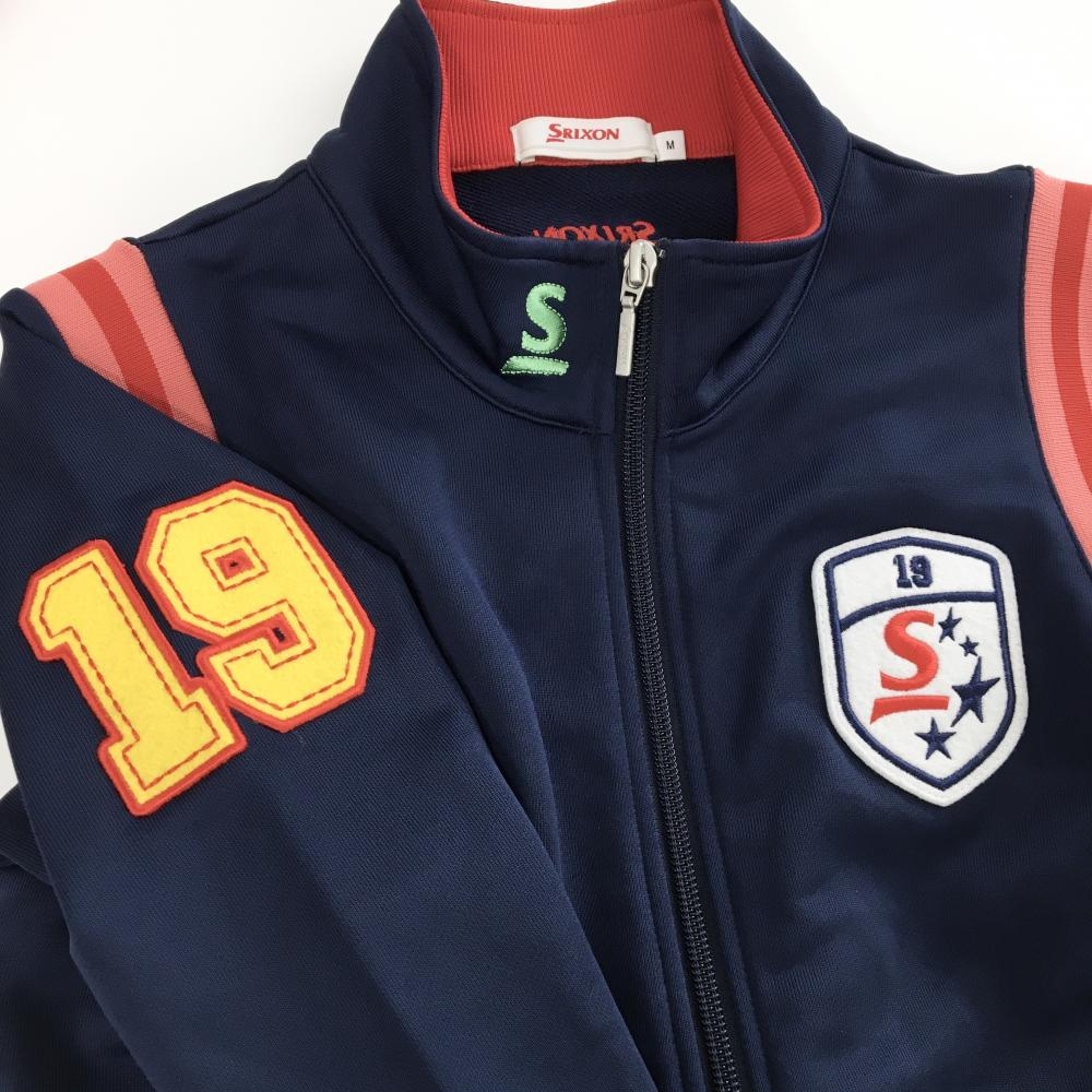 【美品】スリクソン ジャケットブルゾン ネイビー×ピンク×レッド 胸ロゴワッペン レディース M ゴルフウェア SRIXON