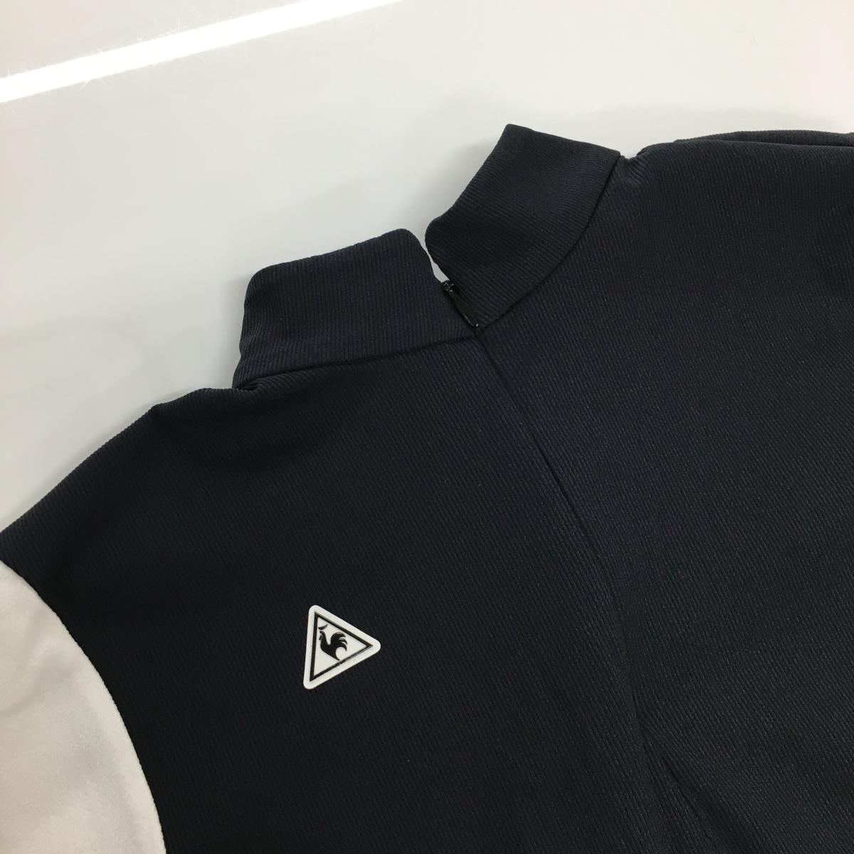 ルコックゴルフ 長袖ハイネックシャツ 黒×白 袖一部シースルー ハーフジップ レディース S ゴルフウェア le coq sportif