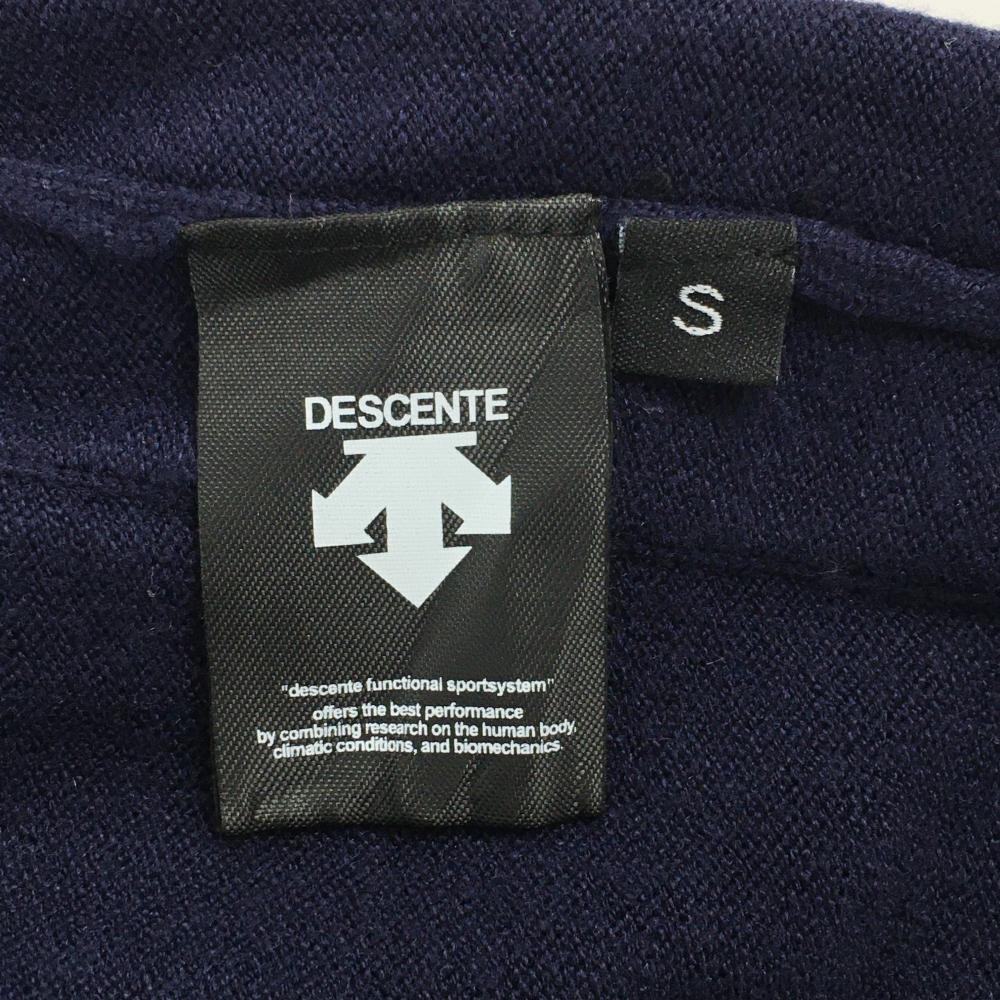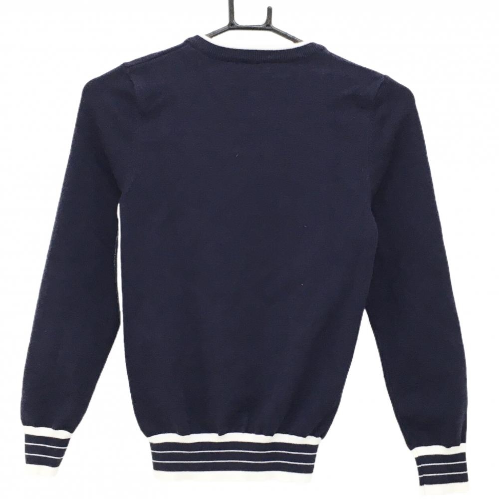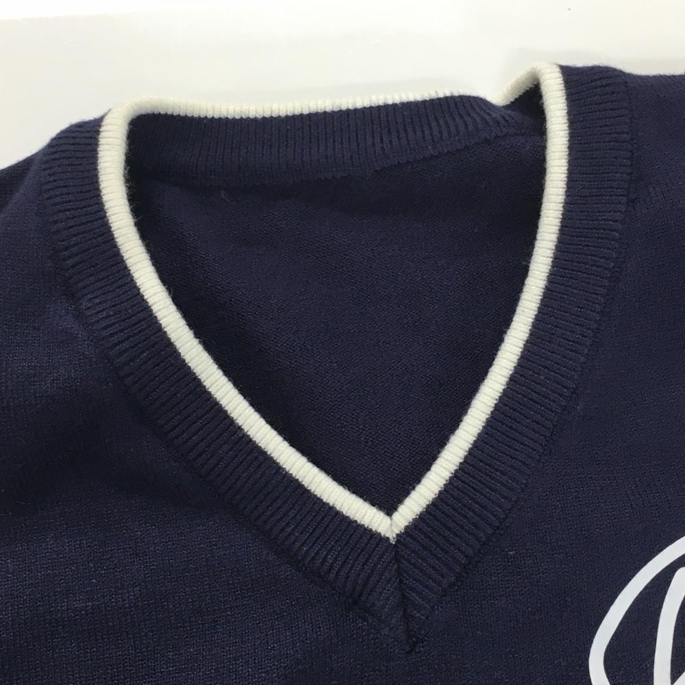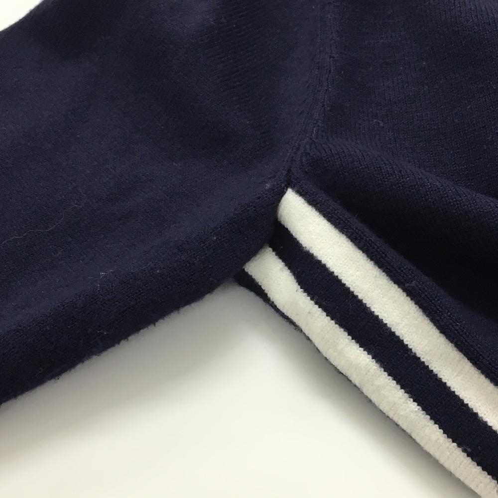 デサント セーター ネイビー×白 Vネック 肩ロゴ ニット レディース S ゴルフウェア DESCENTE