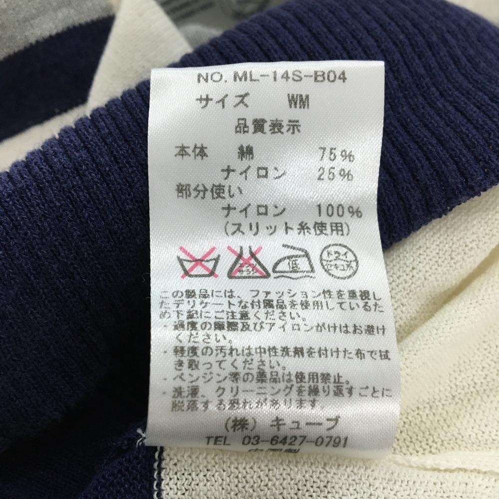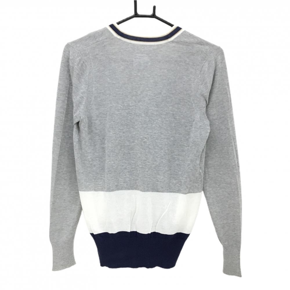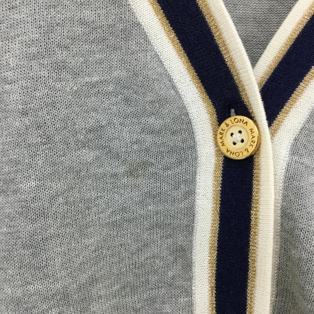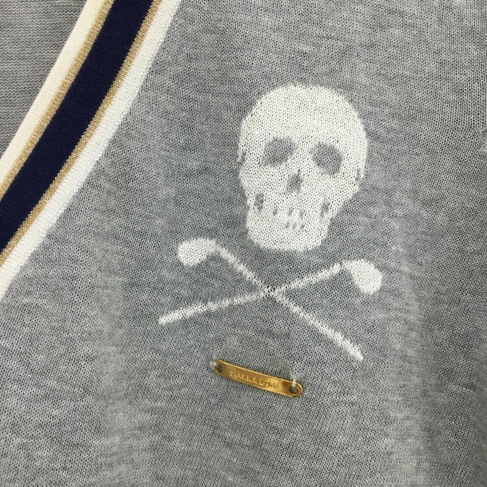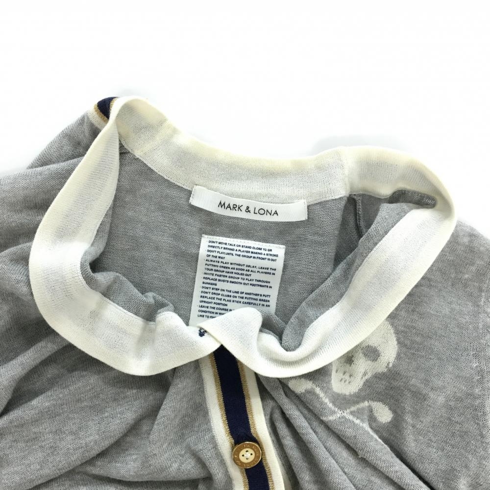 マークアンドロナ ニットカーディガン グレー×ネイビー スカル コットン混 Vネック レディース WM ゴルフウェア MARK&LONA