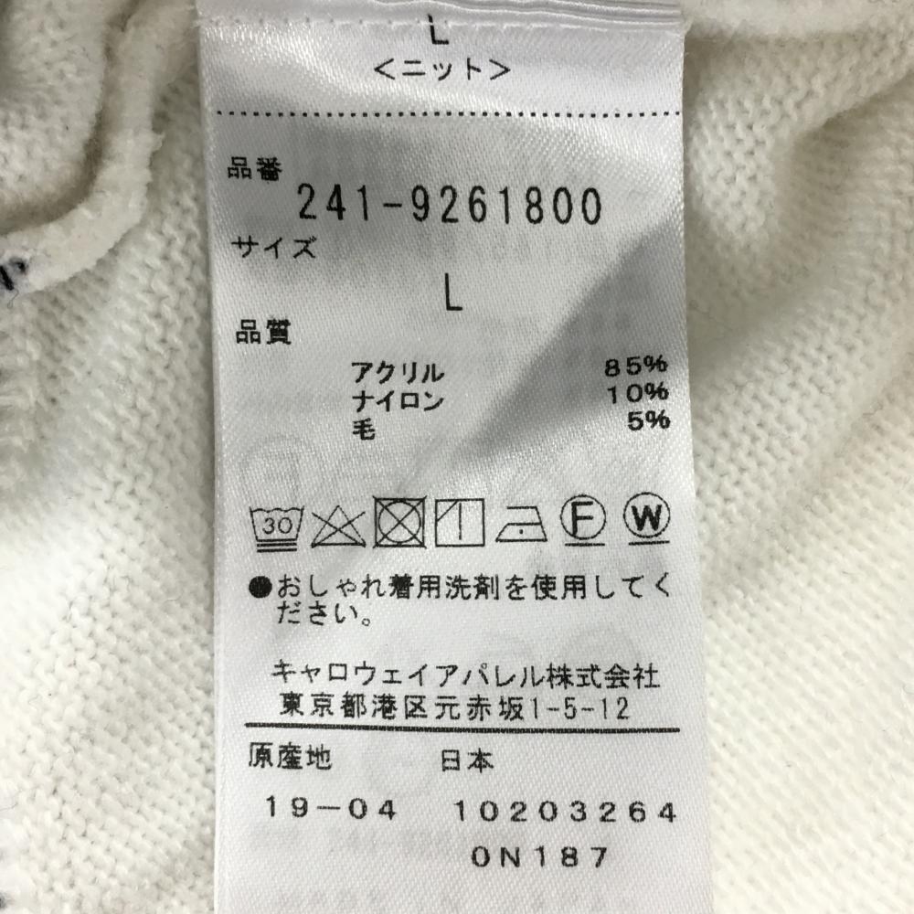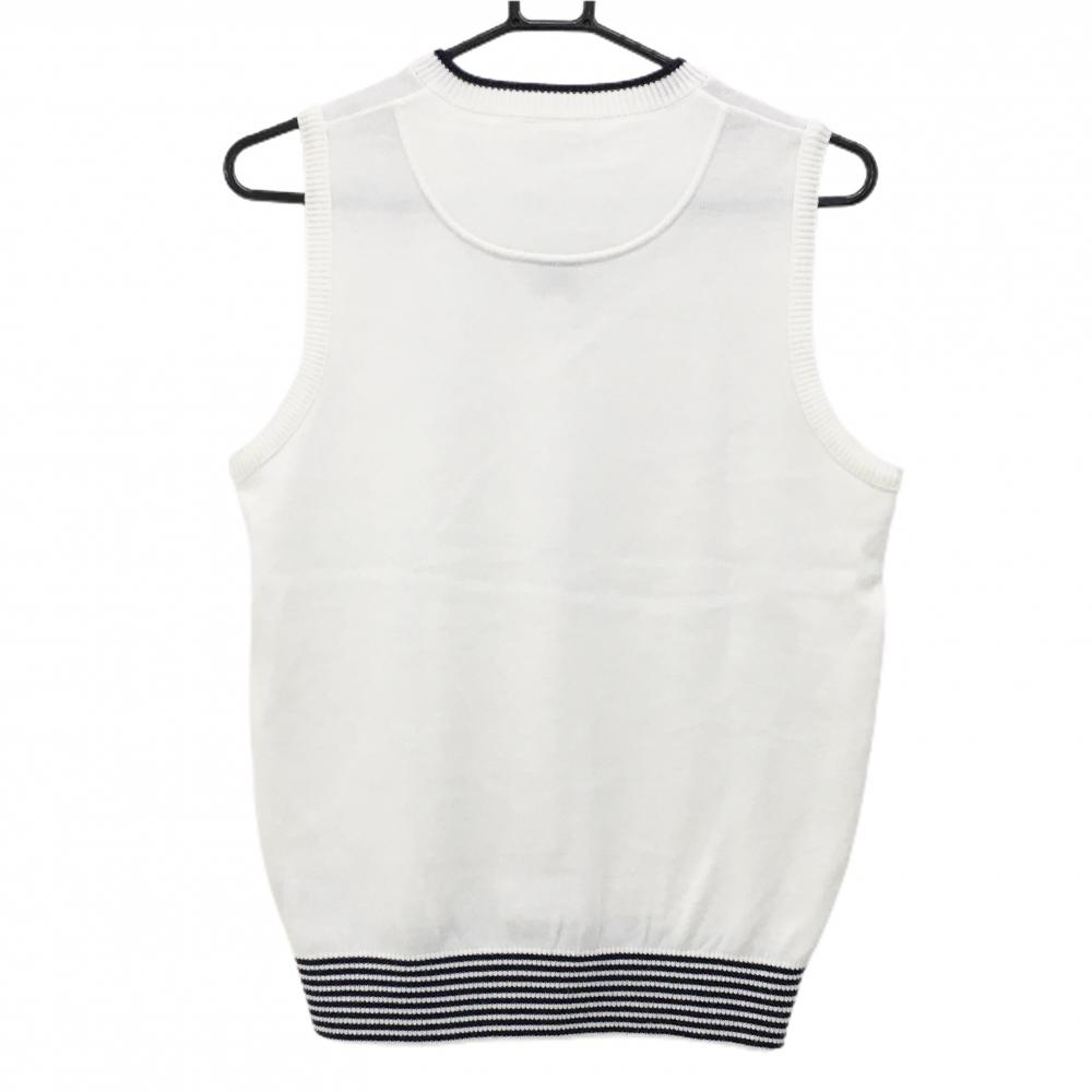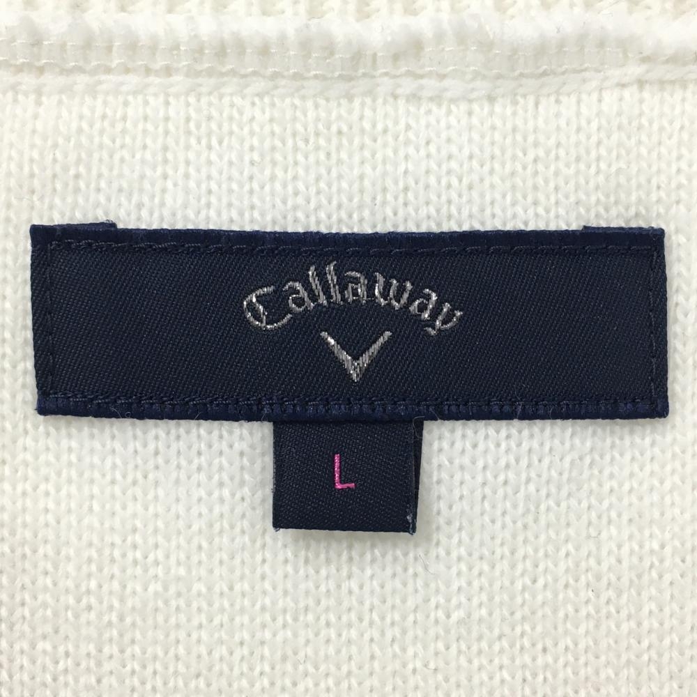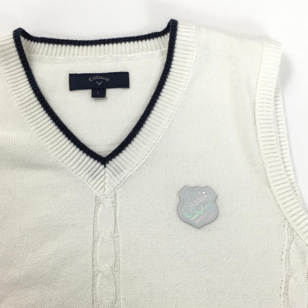 【超美品】キャロウェイ ニットベスト 白×ネイビー 前面ケーブル編み ワッペン レディース L ゴルフウェア Callaway