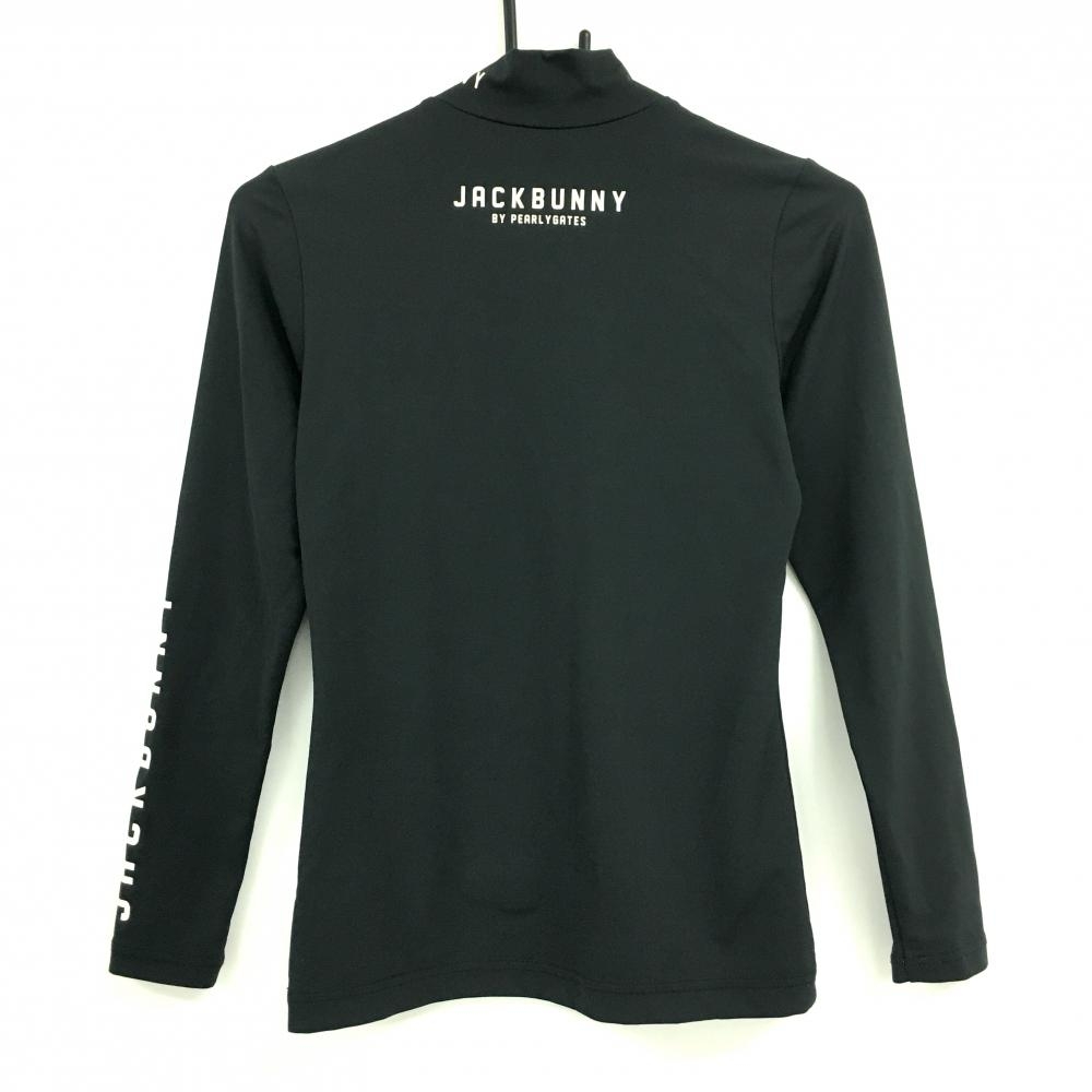 【美品】ジャックバニー 長袖ハイネックシャツ 黒×ライトベージュ ロゴプリント ストレッチ レディース 0(S) ゴルフウェア Jack Bunny
