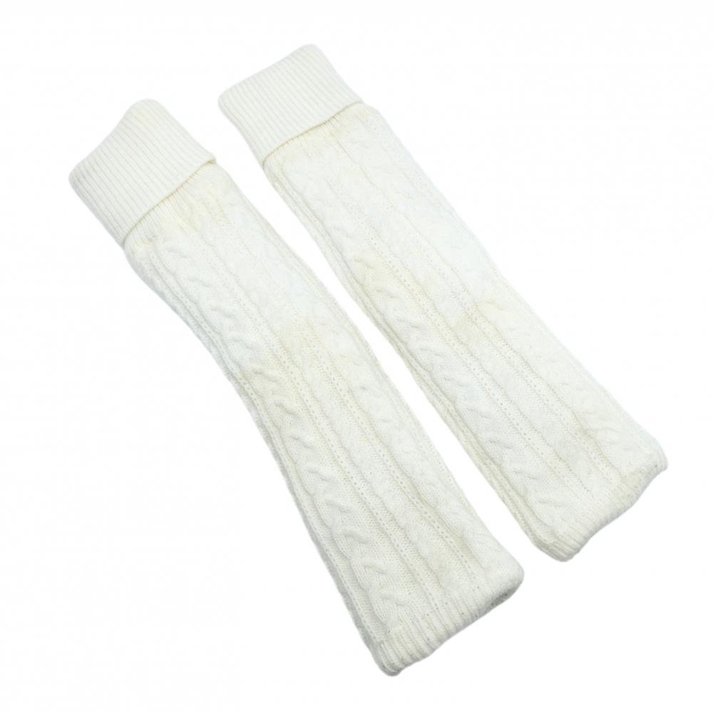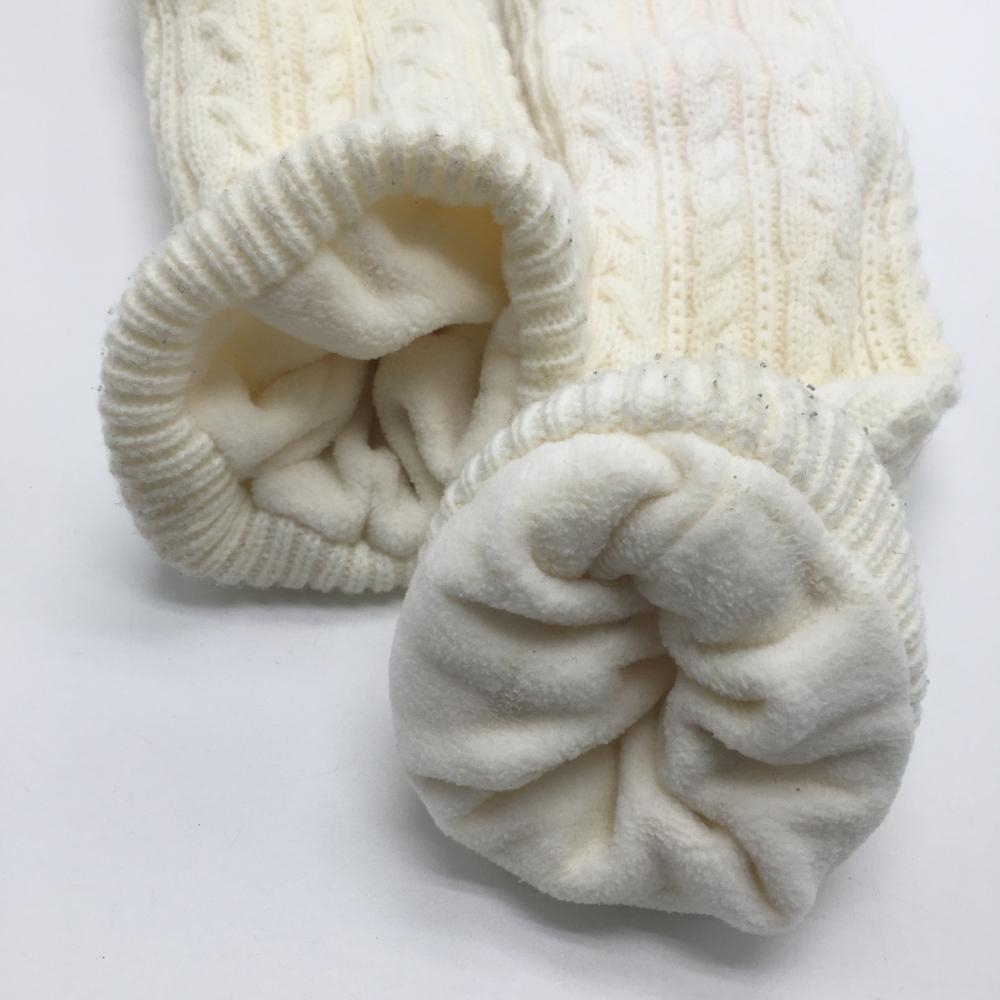 ビームスゴルフ ニットレッグウォーマー 白 ケーブル編み 裏フリース ロゴ刺しゅう レディース ゴルフウェア BEAMS GOLF
