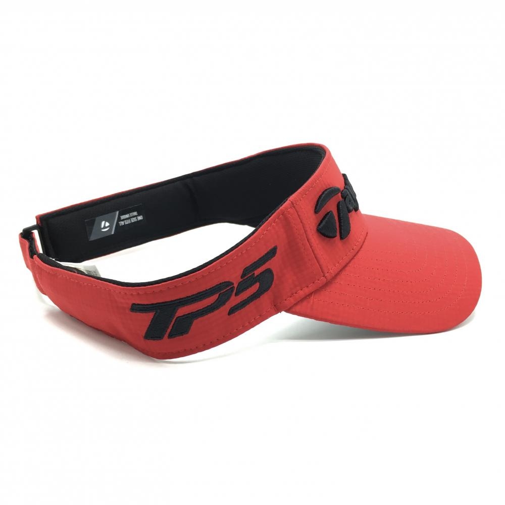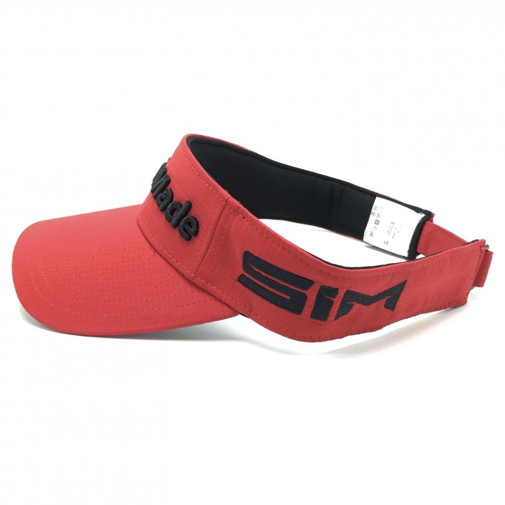 【超美品】テーラーメイド サンバイザー レッド×黒 立体ロゴ刺しゅう フリー(57-59cm) ゴルフウェア TaylorMade