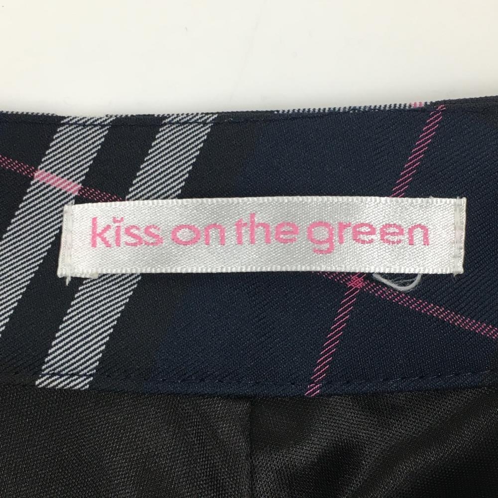 キスオンザグリーン キュロットスカート ネイビー×白 チェック 裏地付 レディース サイズ表記無し ゴルフウェア kiss on the green