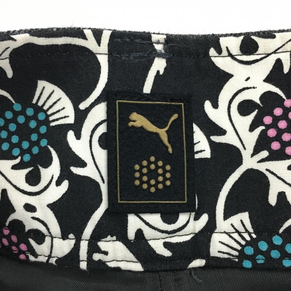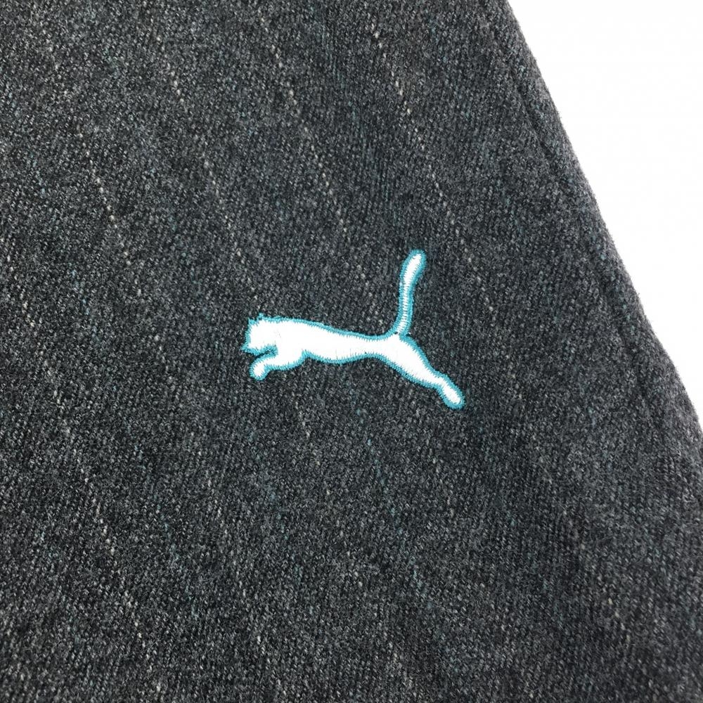 【超美品】プーマ ウールキュロットスカート ダークグレー×ベージュ系 ストライプ調 裾ロゴ レディース M ゴルフウェア PUMA