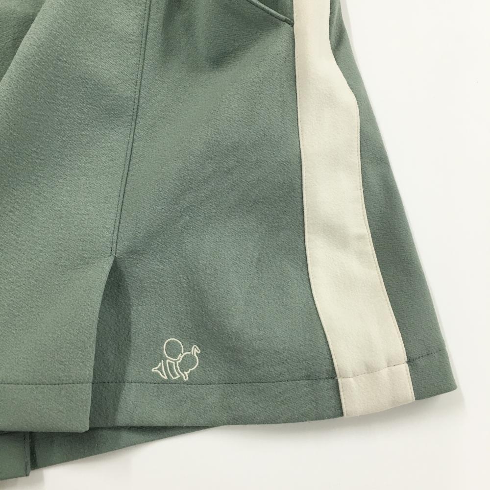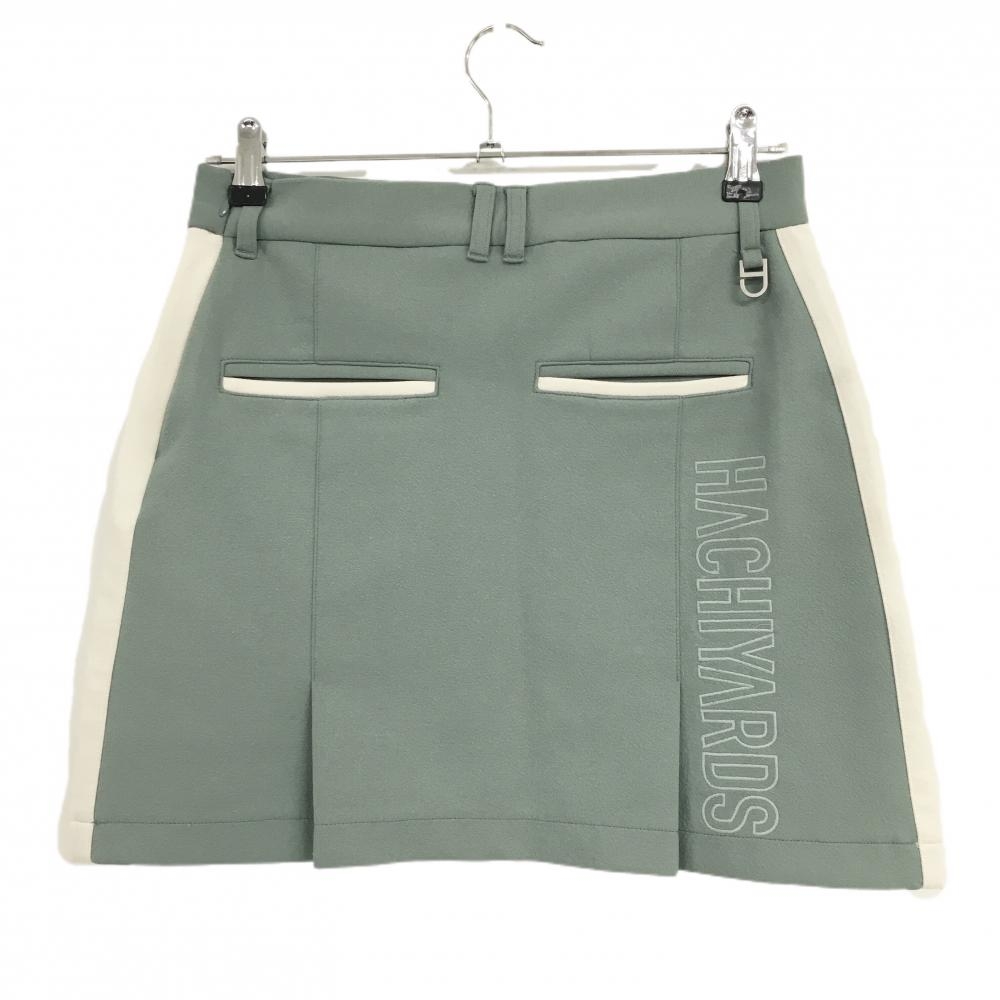 【美品】ハチヤーズ スカート グリーン×アイボリー サイド切替 背面ロゴ刺しゅう レディース L ゴルフウェア 8YARDS