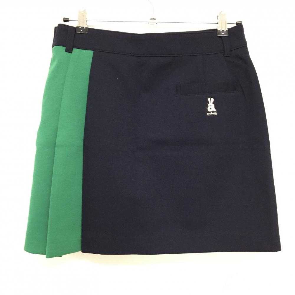 【新品】アルチビオ スカート ネイビー×白×グリーン 前面チェック部微起毛 裏地付 レディース 40(L) ゴルフウェア archivio