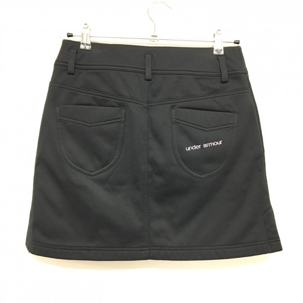 【美品】アンダーアーマー スカート 黒 ロゴライトパープル 裏起毛 レディース MD ゴルフウェア UNDER ARMOUR