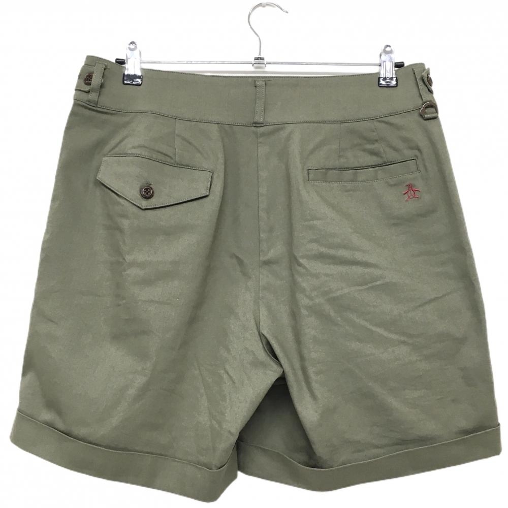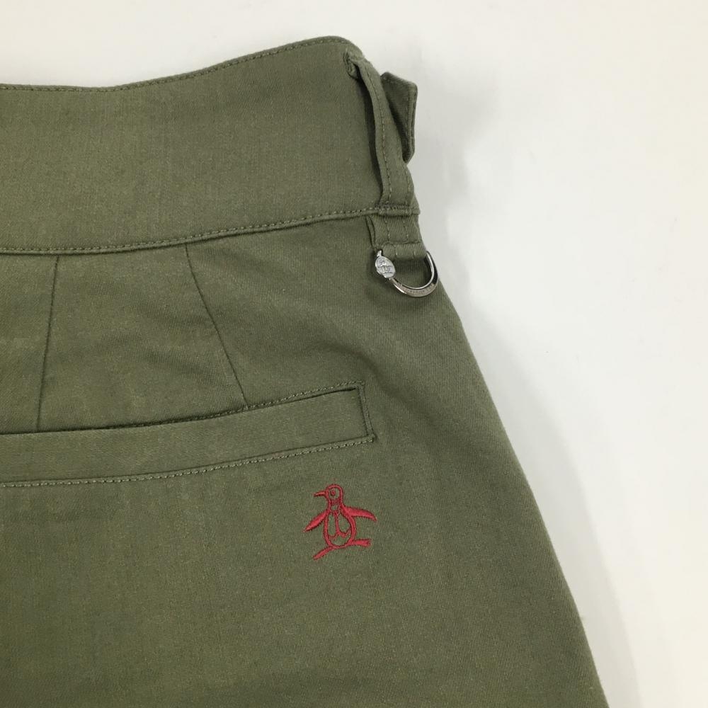 【美品】マンシングウェア ハーフパンツ カーキ ロゴ刺しゅうピンク レディース 15 ゴルフウェア Munsingwear