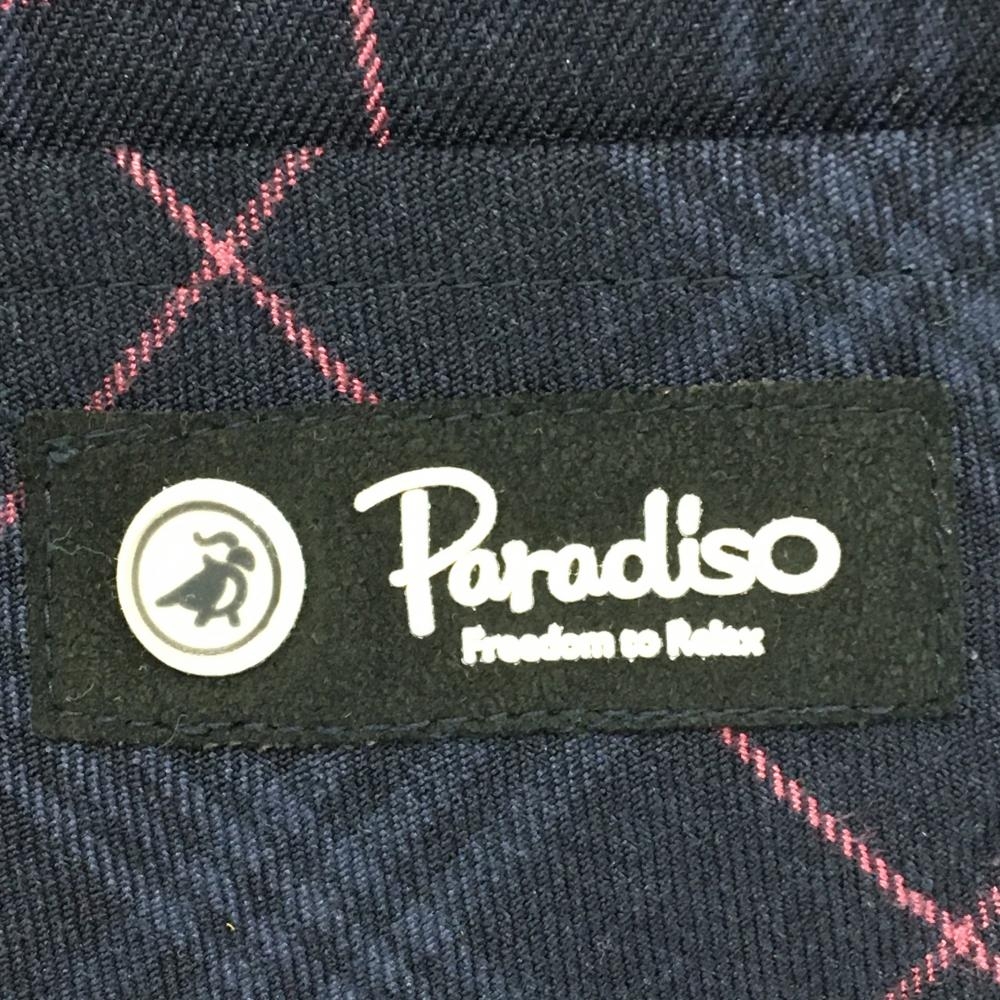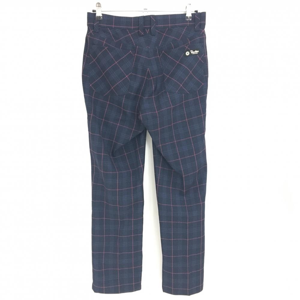 【美品】パラディーゾ パンツ ネイビー×ピンク チェック 表微起毛 メンズ 79 ゴルフウェア Paradiso