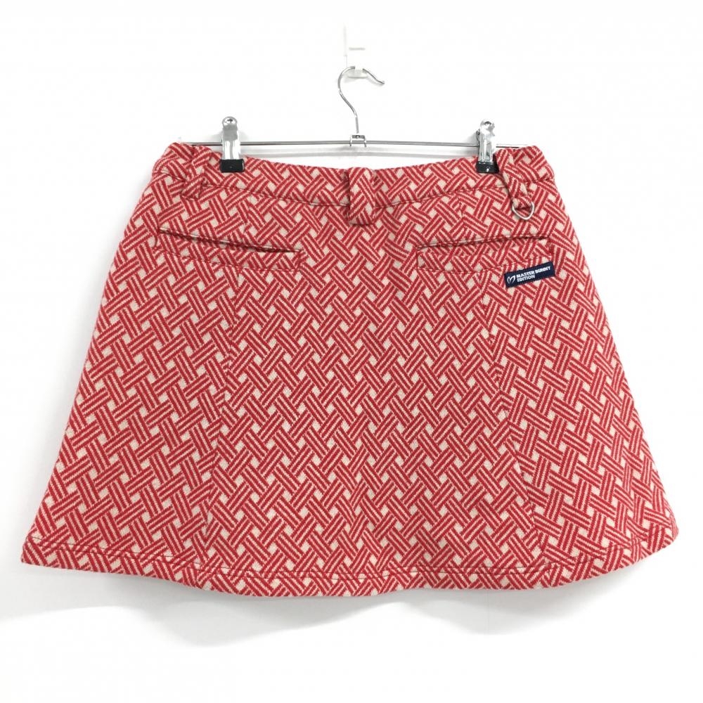 【超美品】マスターバニー スカート レッド×ベージュ ウール混 裏地付 レディース 2(L) ゴルフウェア MASTER BUNNY EDITION