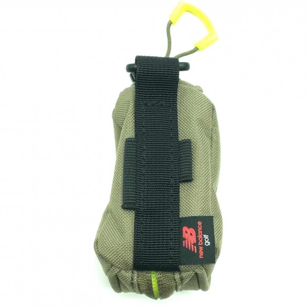 【超美品】ニューバランスゴルフ ボールケース カーキ×イエロー カラビナ付 ボールポーチ ゴルフ New Balance