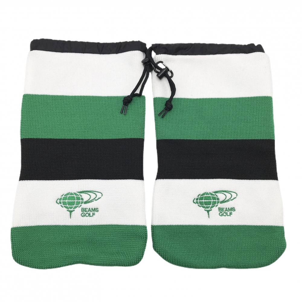 【美品】ビームスゴルフ ニットシューズケース 白×黒×グリーン 太ボーダー ゴルフ BEAMS GOLF