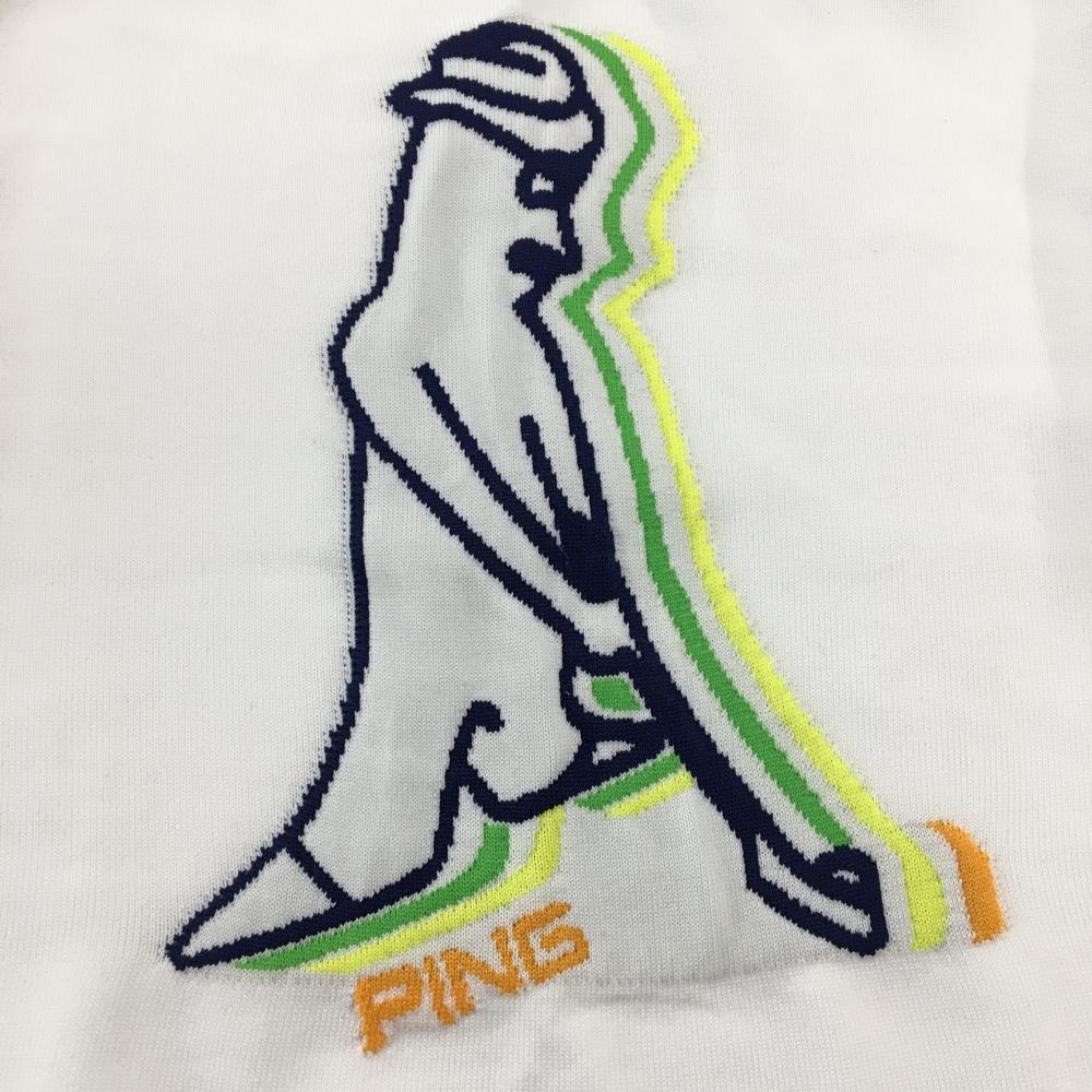ピン セーター 白×ネイビー フロントロゴ ニット レディース L ゴルフウェア PING