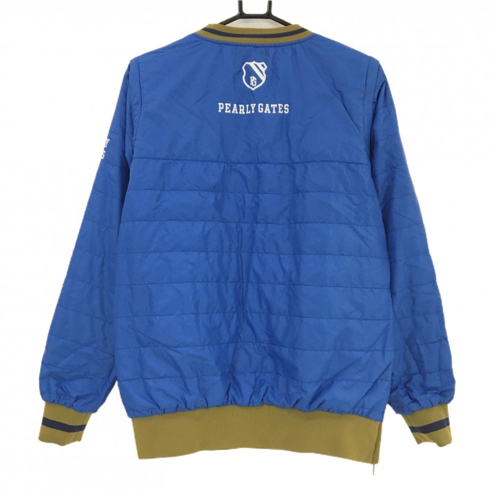 【美品】パーリーゲイツ 中綿リバーシブルスニード ライトカーキ 片面ブルー 袖着脱可ブルゾン レディース 2(L) ゴルフウェア PEARLY GATES