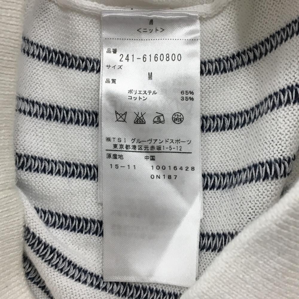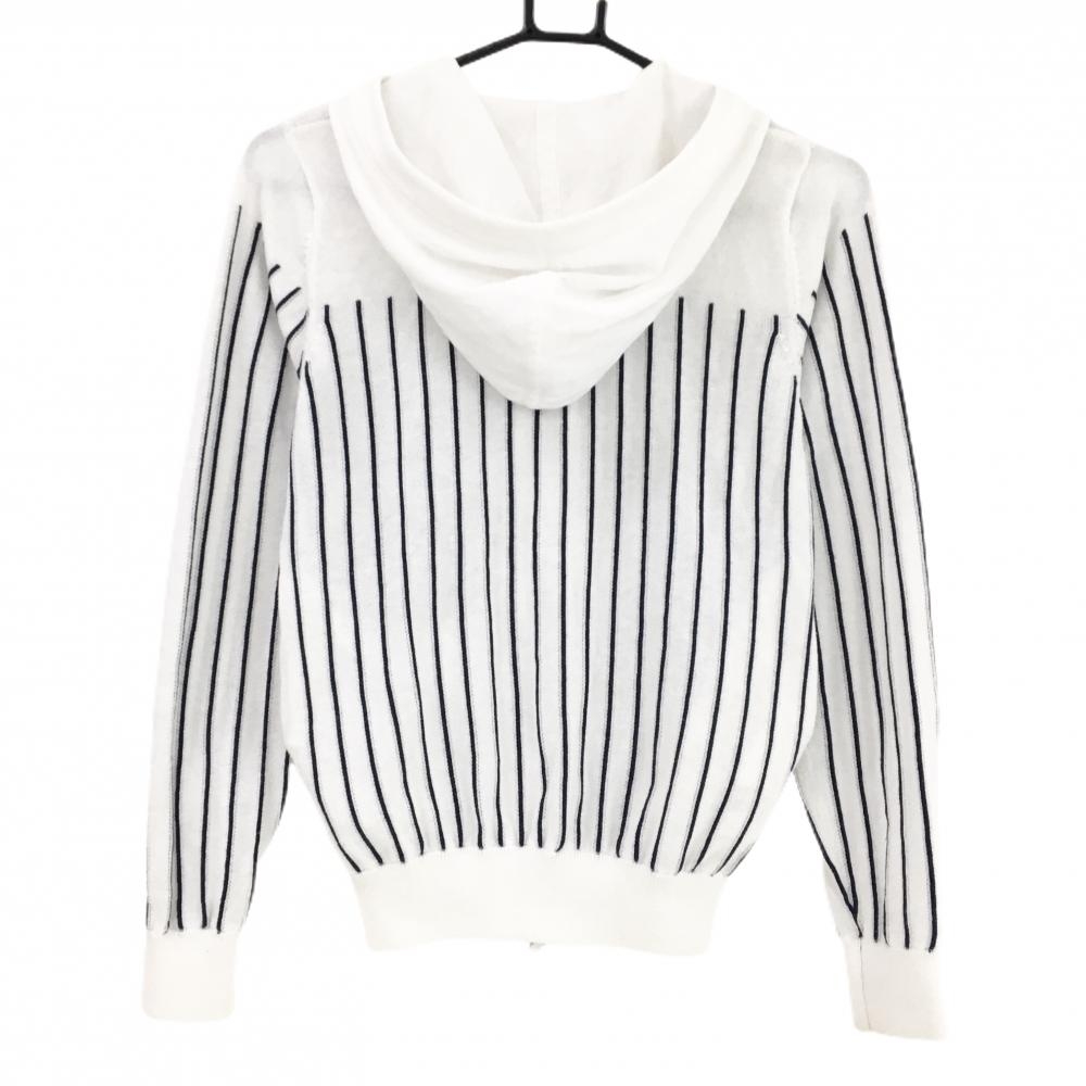 キャロウェイ ニットジップパーカー 白×ネイビー ストライプ ワッペン ジャケット レディース M ゴルフウェア Callaway