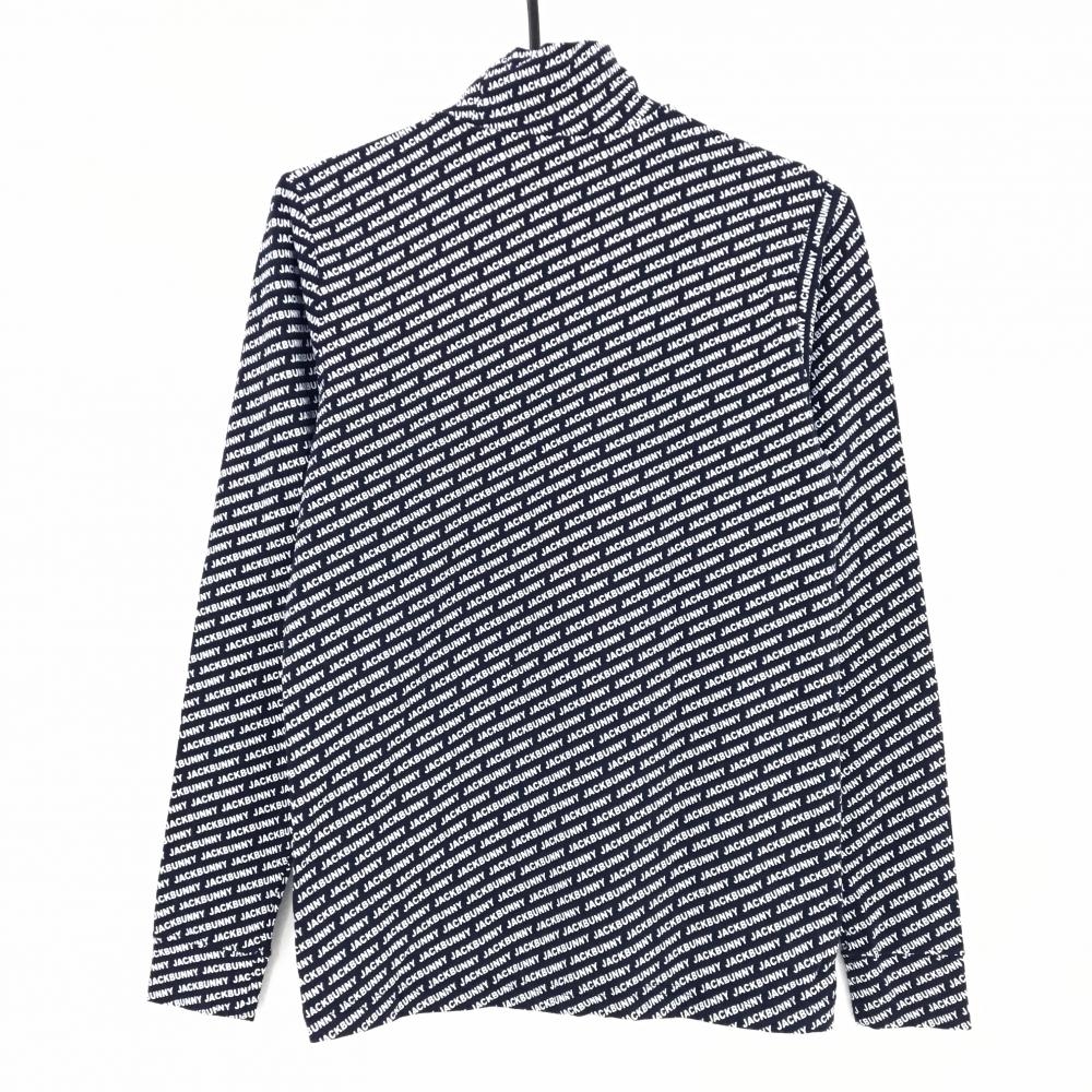 【超美品】ジャックバニー 長袖ハイネックシャツ ネイビー×白 ロゴ総柄 ストレッチ メンズ 3(S) ゴルフウェア Jack Bunny