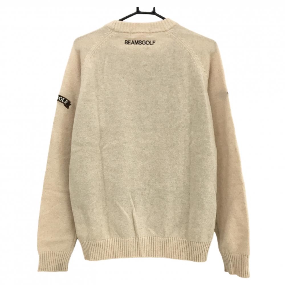 【美品】ビームスゴルフ セーター ベージュ×ブラウン ウール混 袖ロゴ ニット メンズ L ゴルフウェア BEAMS GOLF