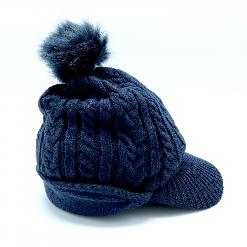 【超美品】プーマ つば付きニット帽 ネイビー ケーブル編み ボンボン取外し可 OneSizeFitsAll(54-57cm) ゴルフウェア 2025年モデル PUMA