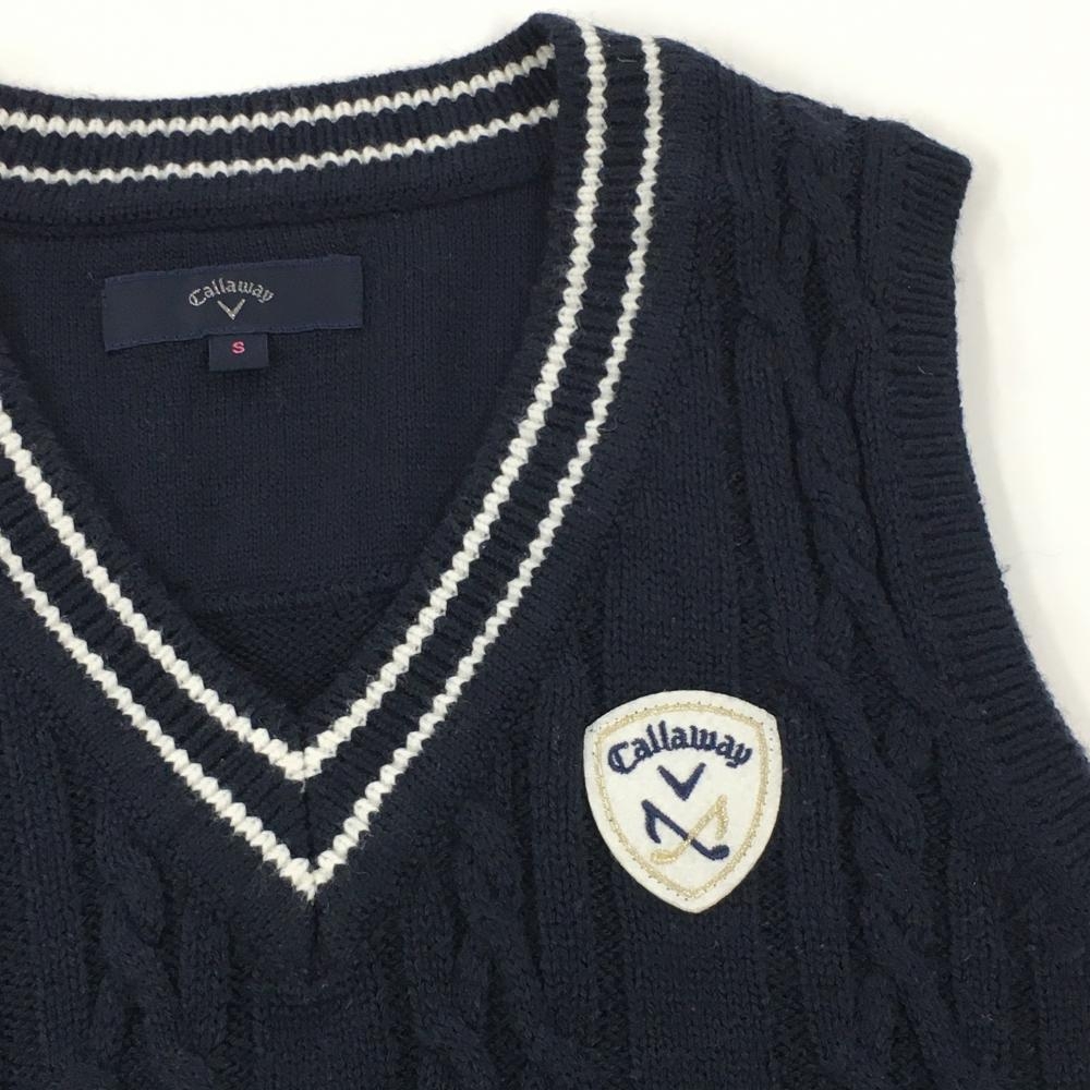 【美品】キャロウェイ ニットベスト ネイビー×白 Vネック レディース S ゴルフウェア Callaway