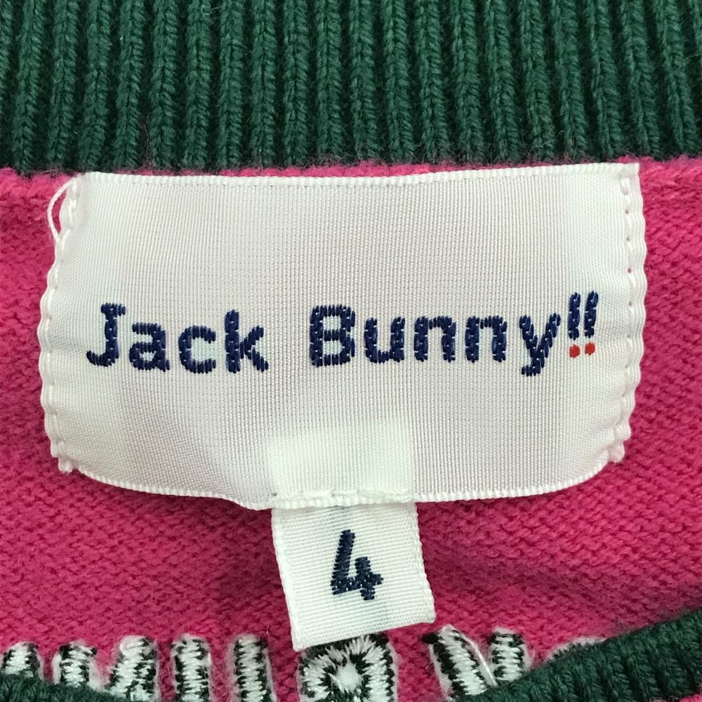【美品】ジャックバニー セーター ピンク×グリーン ネック・袖口重ね着風 コットン混 ニット メンズ 4(M) ゴルフウェア Jack Bunny
