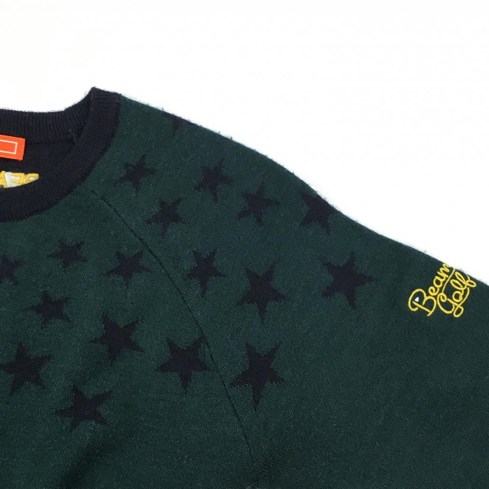ビームスゴルフ セーター ダークグリーン系×ダークネイビー 身頃上星柄 ウール混 ニット レディース M ゴルフウェア BEAMS GOLF
