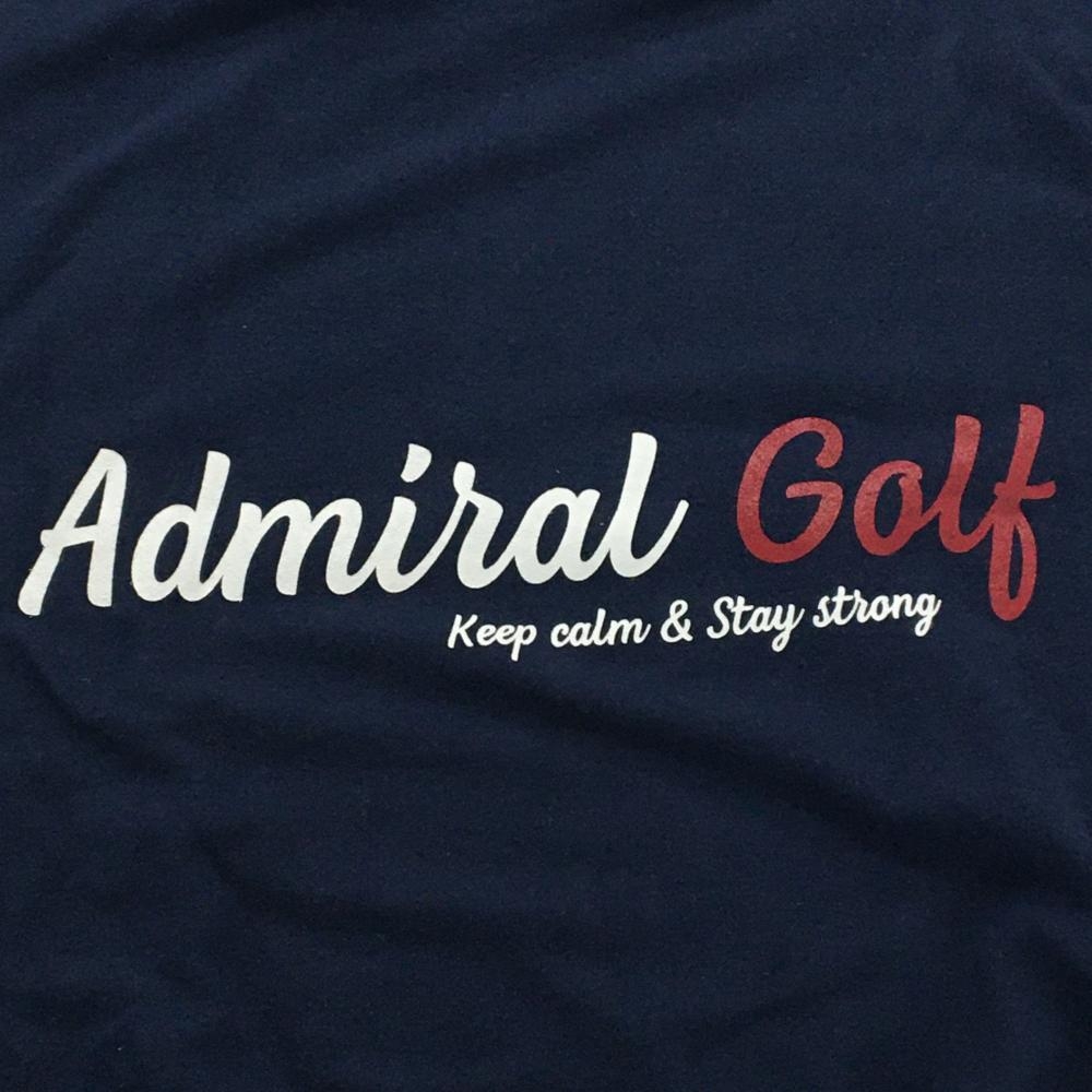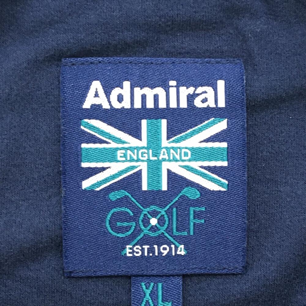 【美品】アドミラル 長袖ハイネックシャツ ネイビー×白 ロゴプリント 微起毛 メンズ XL ゴルフウェア Admiral